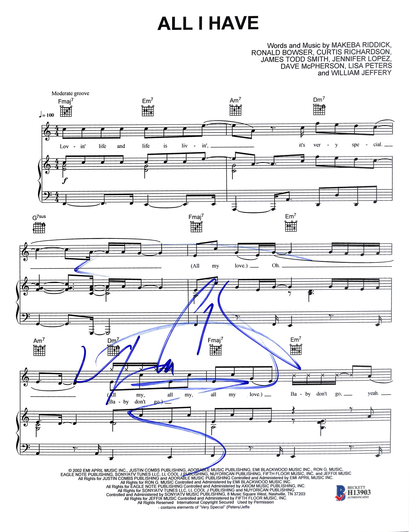 LL Cool J Authentic Signed All I Have 8.5x11 Music Sheet Photo BAS #H13903