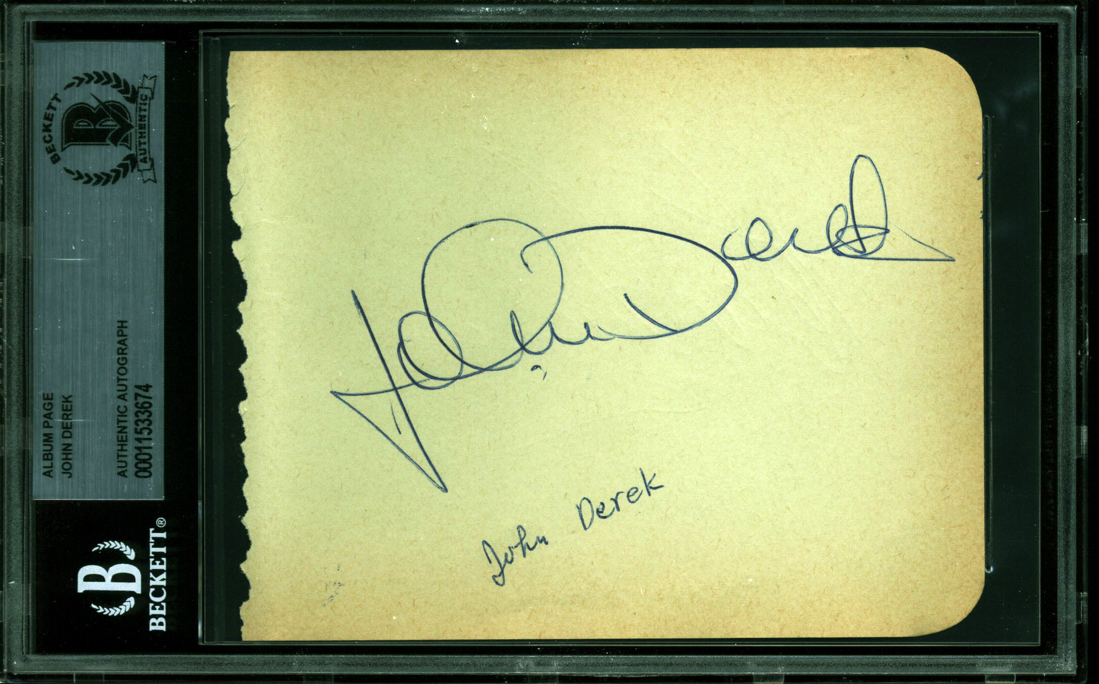 John Derek All the King's Men Authentic Signed 4x5 Album Page BAS Slabbed 1