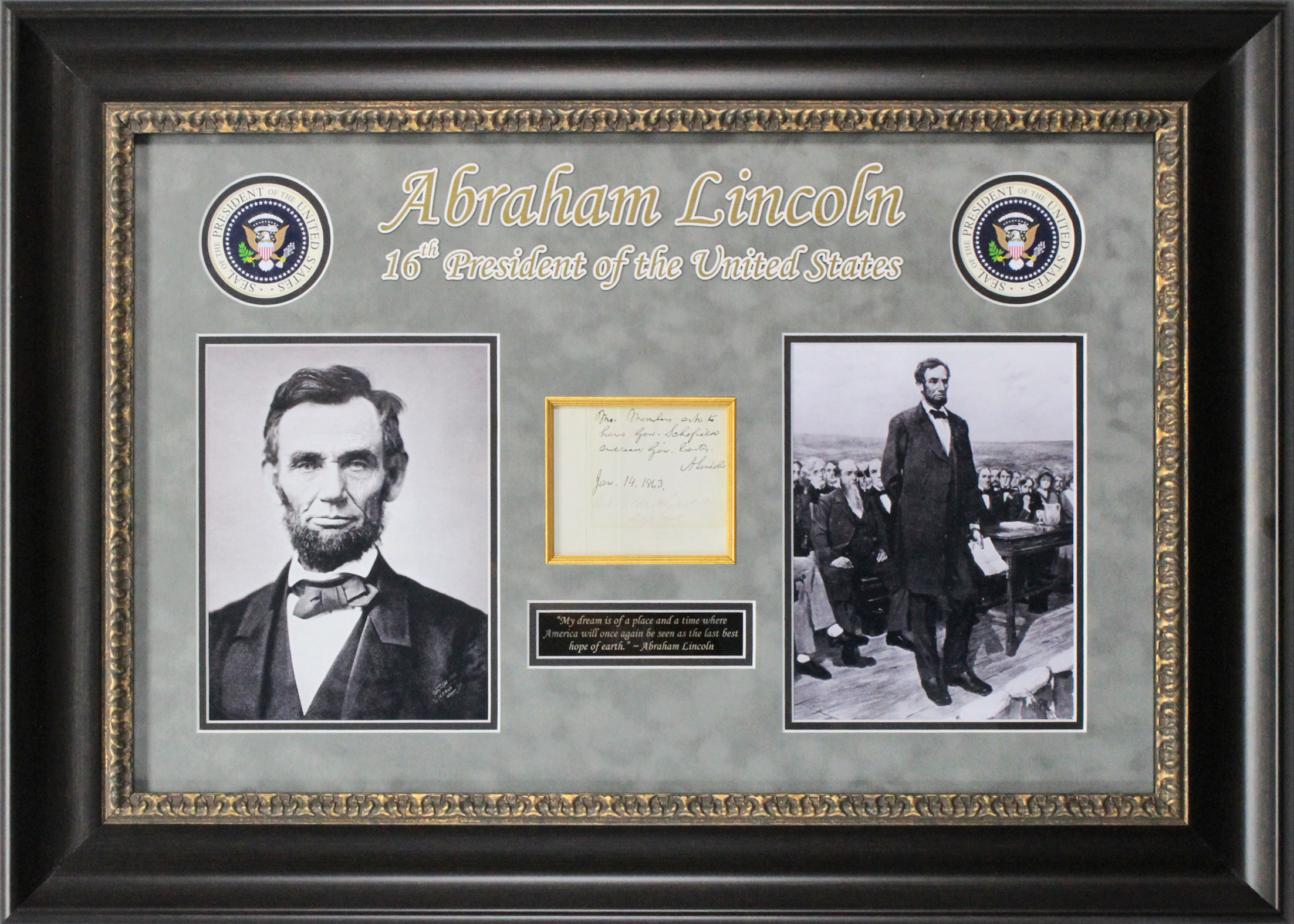 Abraham Lincoln Signed & Framed 4x4.5 Hand Written Cut Auto Graded 10! BAS
