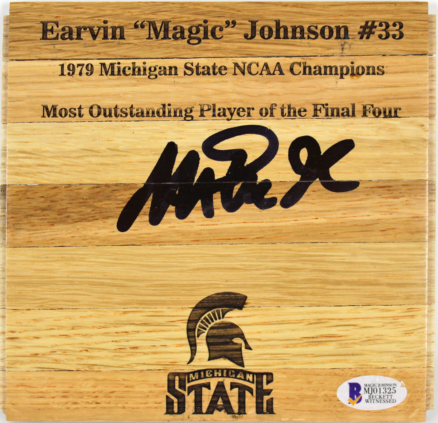 Michigan State Magic Johnson Authentic Signed 6x6 Floorboard BAS Witnessed