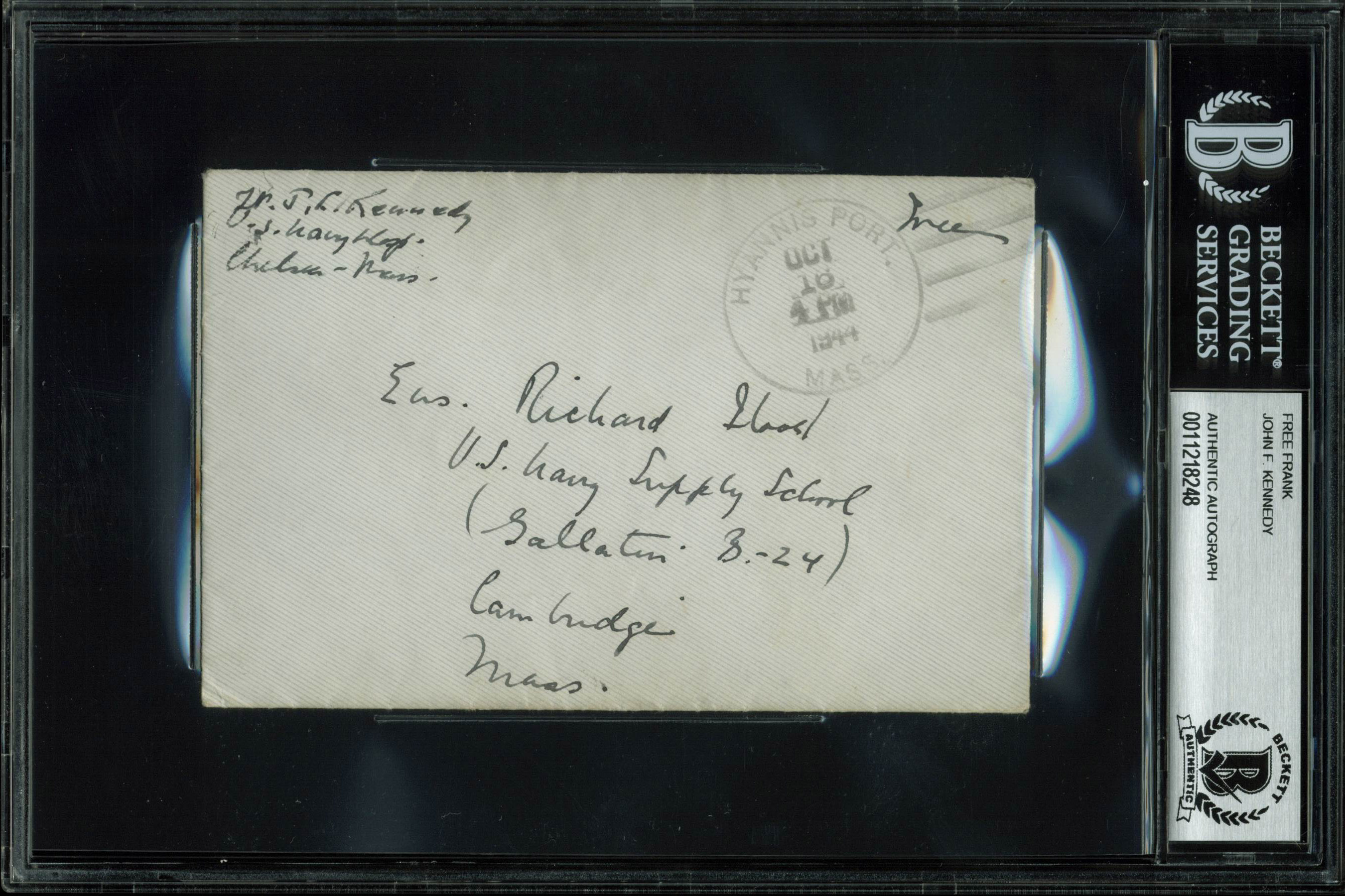 John F. Kennedy Authentic Signed 3x5.5 Handwritten 1944 Free Frank BAS Slabbed