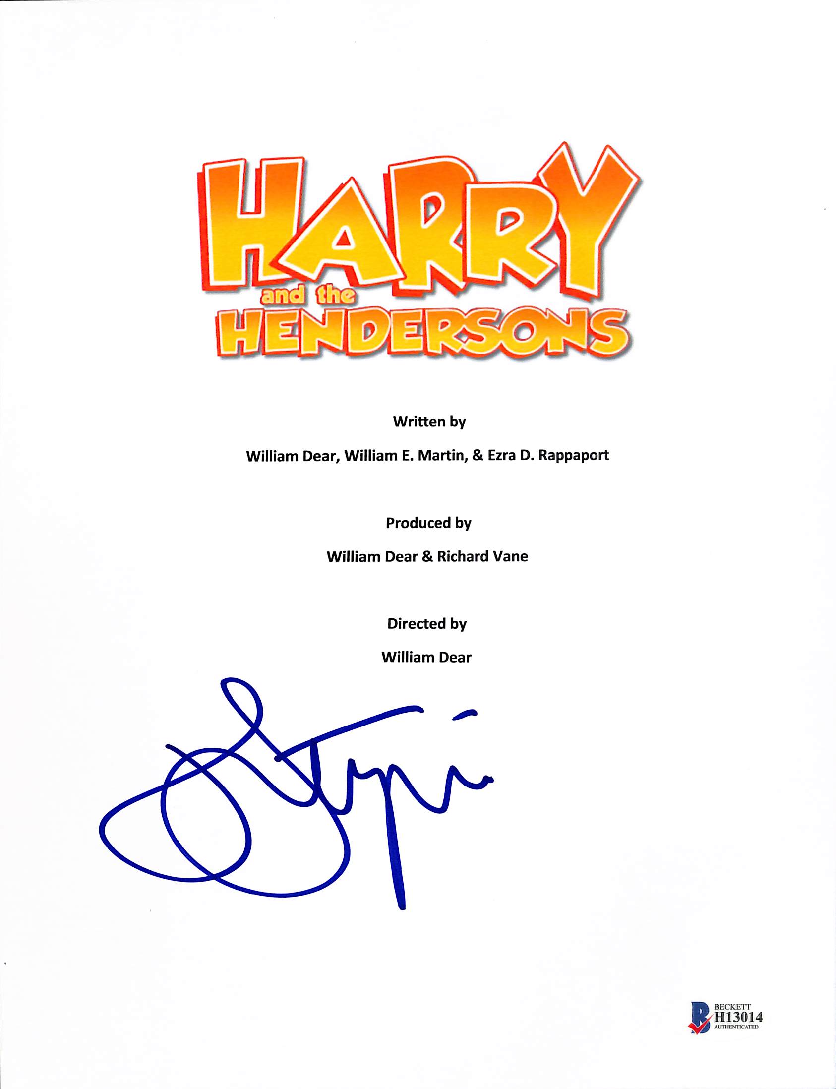 John Lithgow Authentic Signed Harry and the Henderson Script Cover BAS #H13014