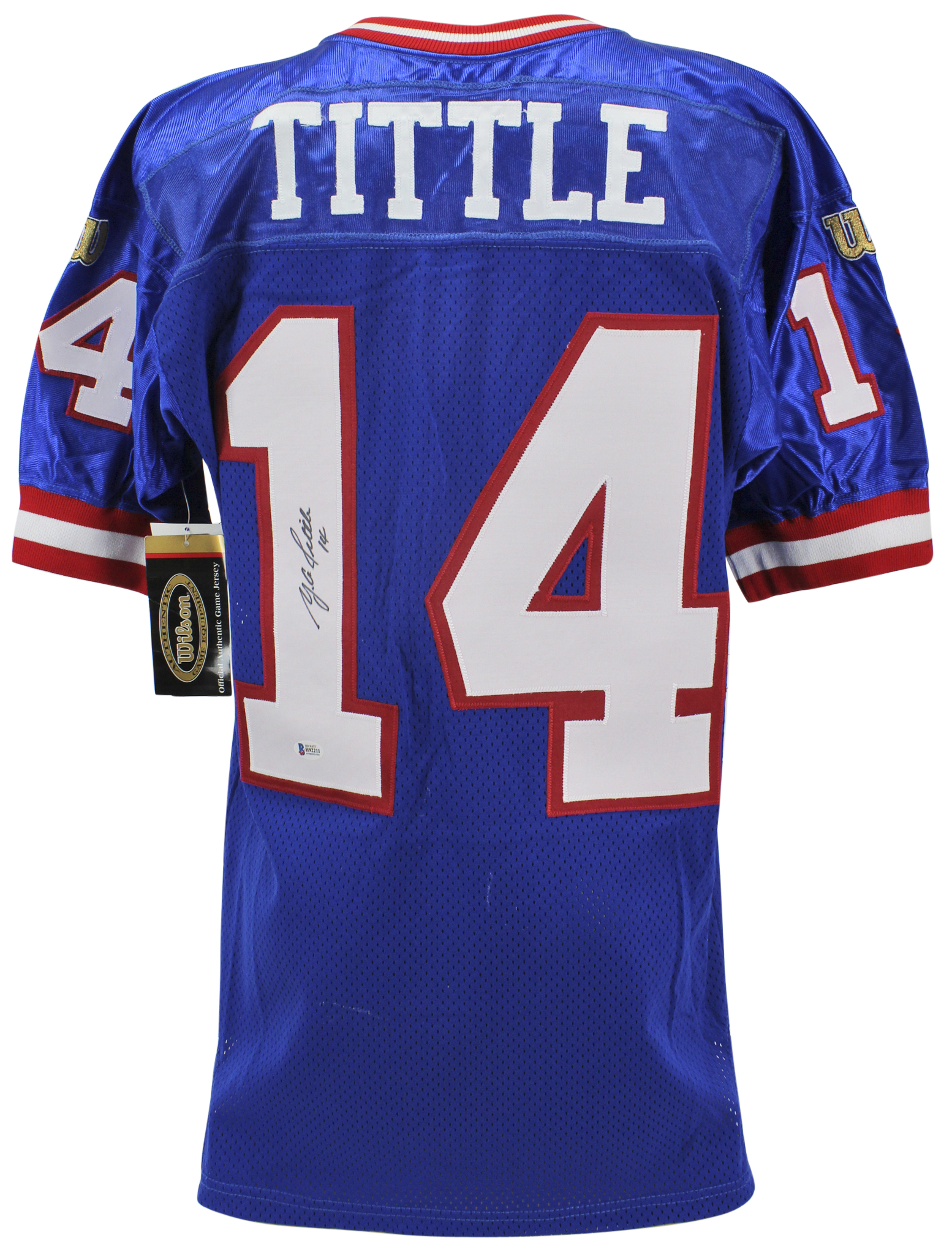 Giants Y.A. Tittle Authentic Signed Blue Wilson Authentic Jersey BAS #H92211