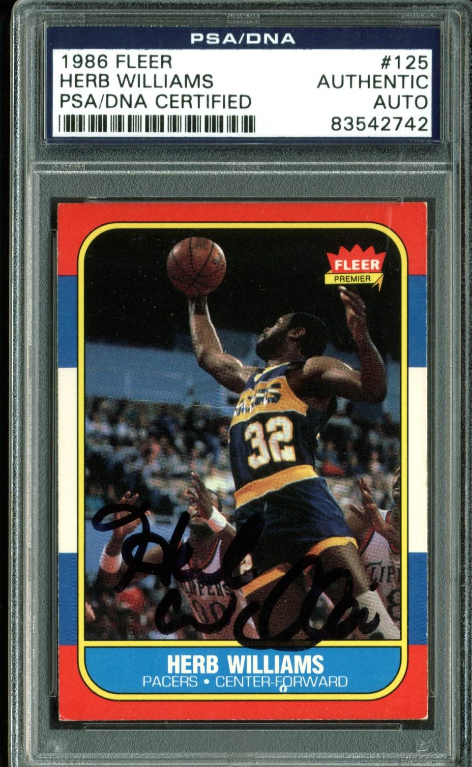 Pacers Herb Williams Authentic Signed 1986 Fleer #125 Card PSA/DNA Slabbed 2