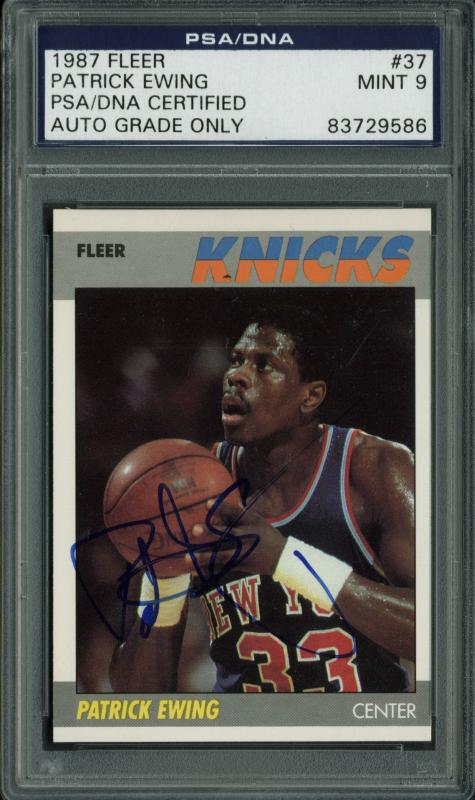 Knicks Patrick Ewing Signed Card 1987 Fleer #37 Auto Graded 9 PSA/DNA Slabbed