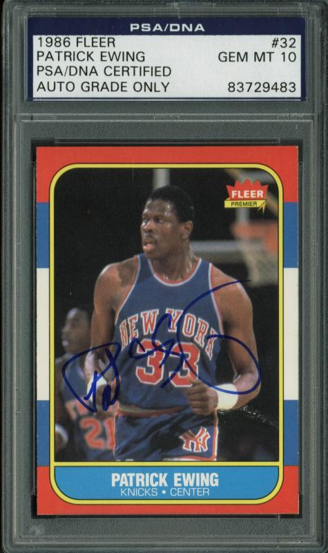 Knicks Patrick Ewing Signed Card 1986 Fleer Rc #32 Auto Graded 10! PSA Slabbed