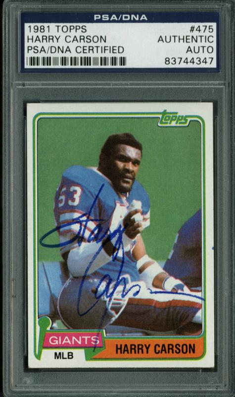 Giants Harry Carson Authentic Signed Card 1981 Topps #475 In Blue PSA Slabbed