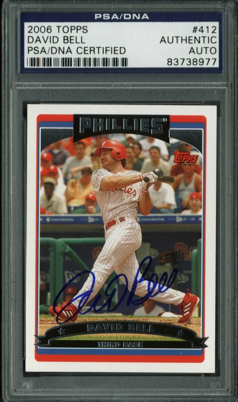 Phillies David Bell Authentic Signed Card 2006 Topps#412 in Blue PSA/DNA Slabbed