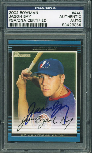 Expos Jason Bay Authentic Signed Card 2002 Bowman Rookie #440 PSA/DNA Slabbed