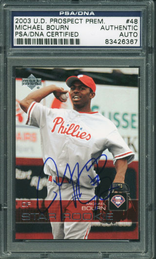 Phillies Michael Bourn Authentic Signed Card 2003 Ud Prospect Rc #48 PSA Slabbed
