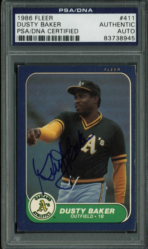 Athletics Dusty Baker Authentic Signed Card 1986 Fleer #411 PSA/DNA Slabbed