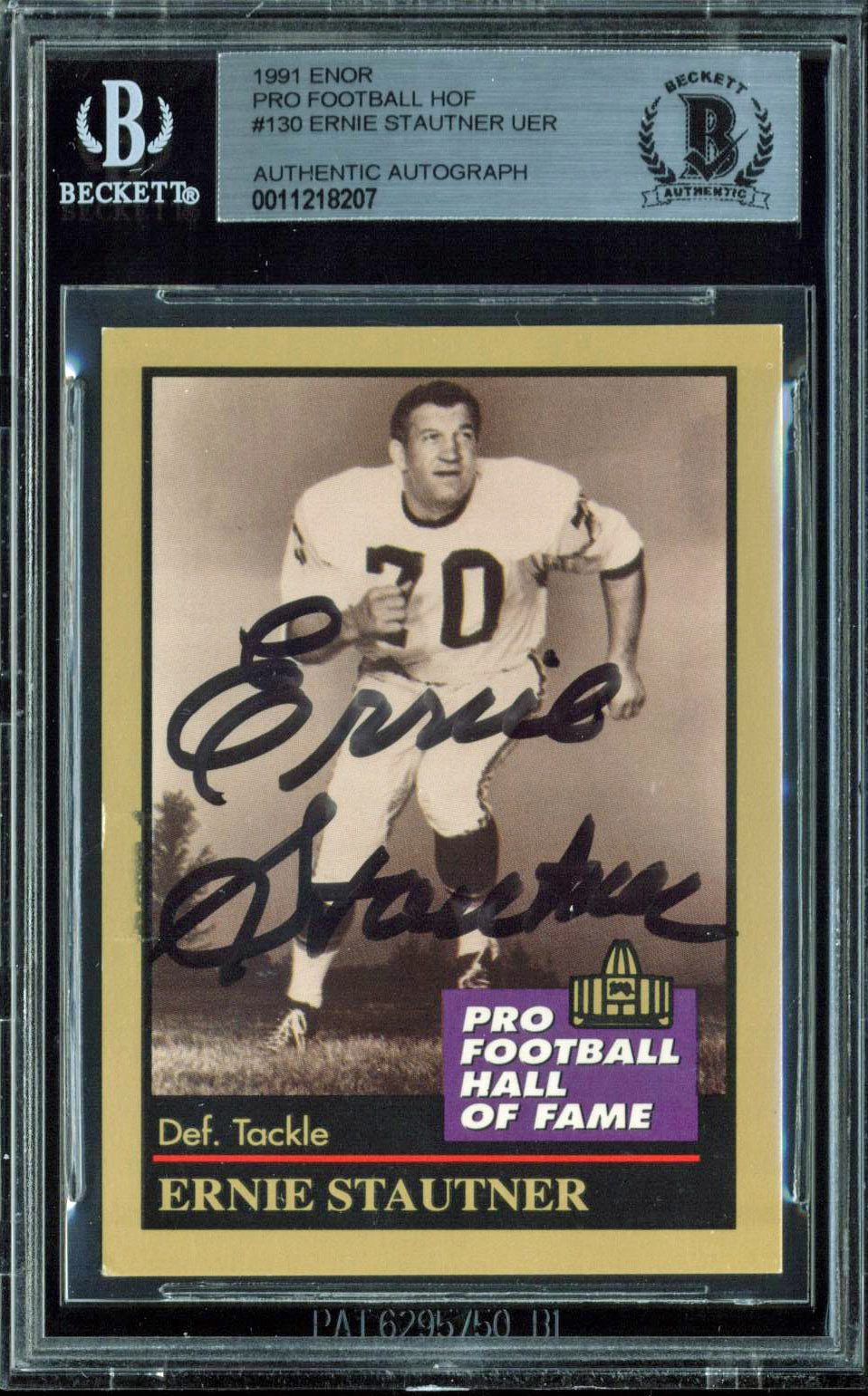 Steelers Ernie Stauner Signed 1991 ENOR Pro Football HOF #130 Card BAS Slabbed