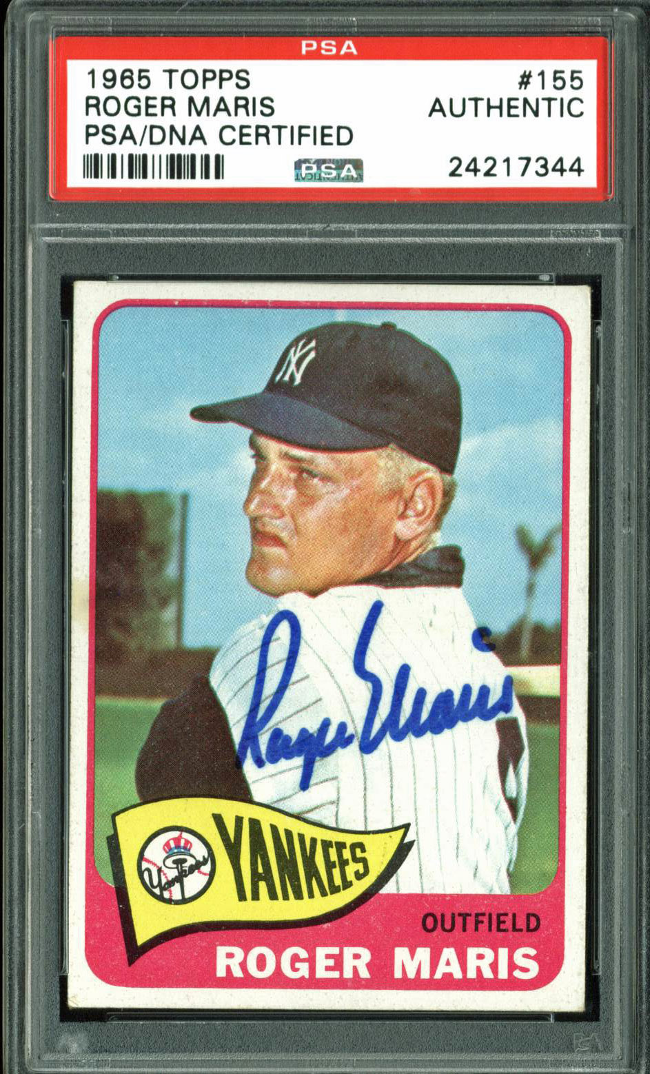 Yankees Roger Maris Authentic Signed 1965 Topps #155 Auto Card PSA/DNA Slabbed