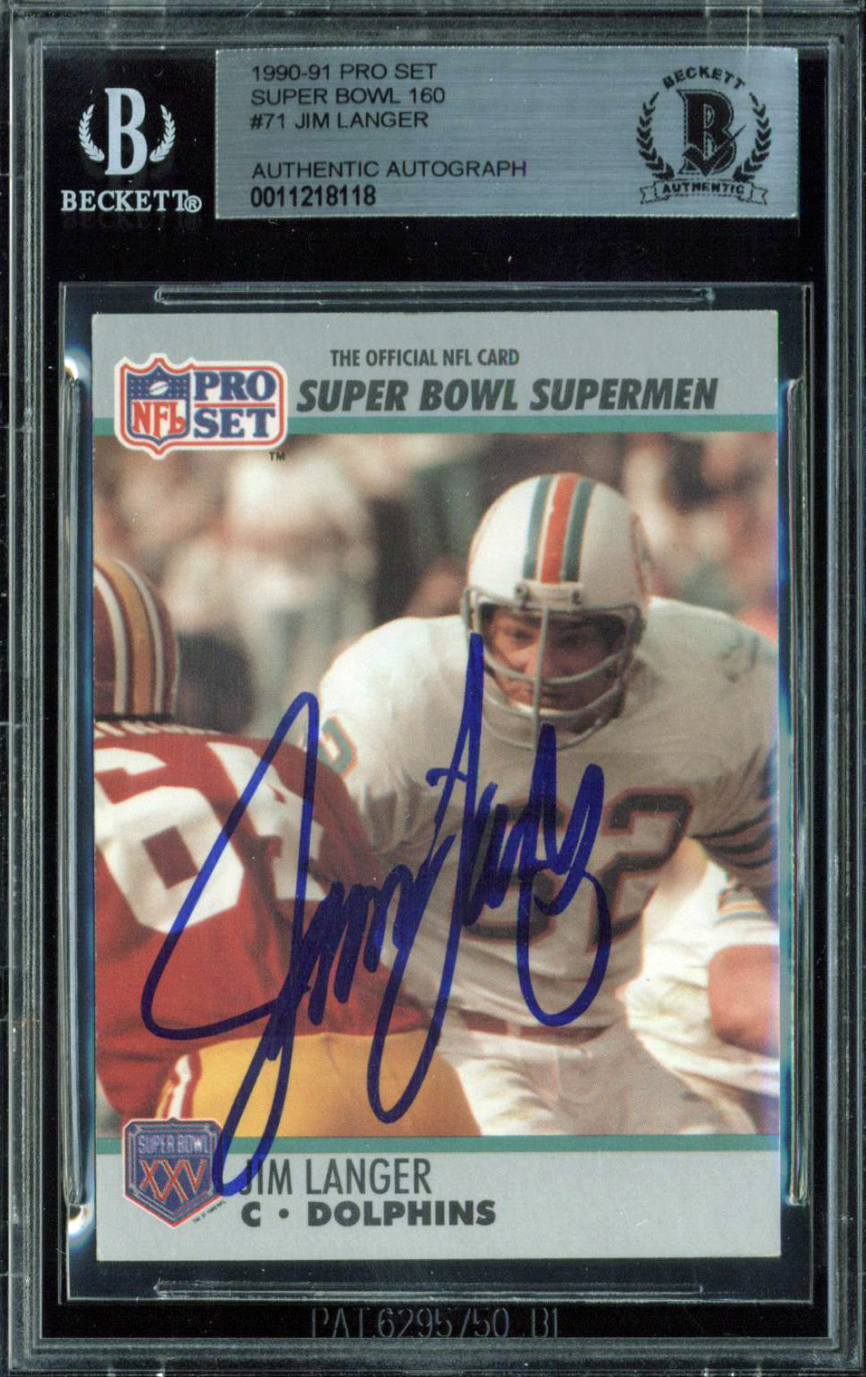 Dolphins Jim Langer Signed 1990 Pro Set Super Bowl 160 #71 Card BAS Slabbed 2