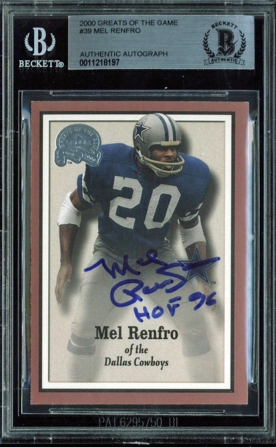 Cowboys Mel Renfro "HOF 96" Signed 2000 Greats Of The Game #39 Card BAS Slabbed