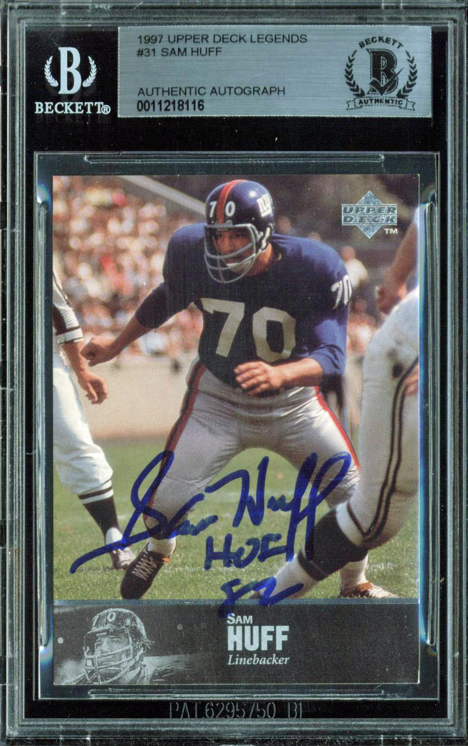 Giants Sam Huff "HOF 82" Signed 1997 Upper Deck Legends #31 Card BAS Slabbed