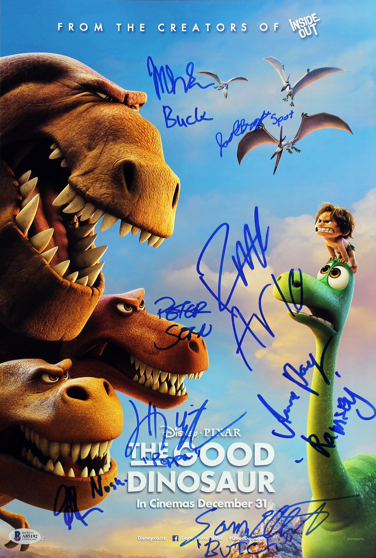 The Good Dinosaur (8) Elliott, Paquin Signed 12x18 Mini Movie Poster BAS #A85192