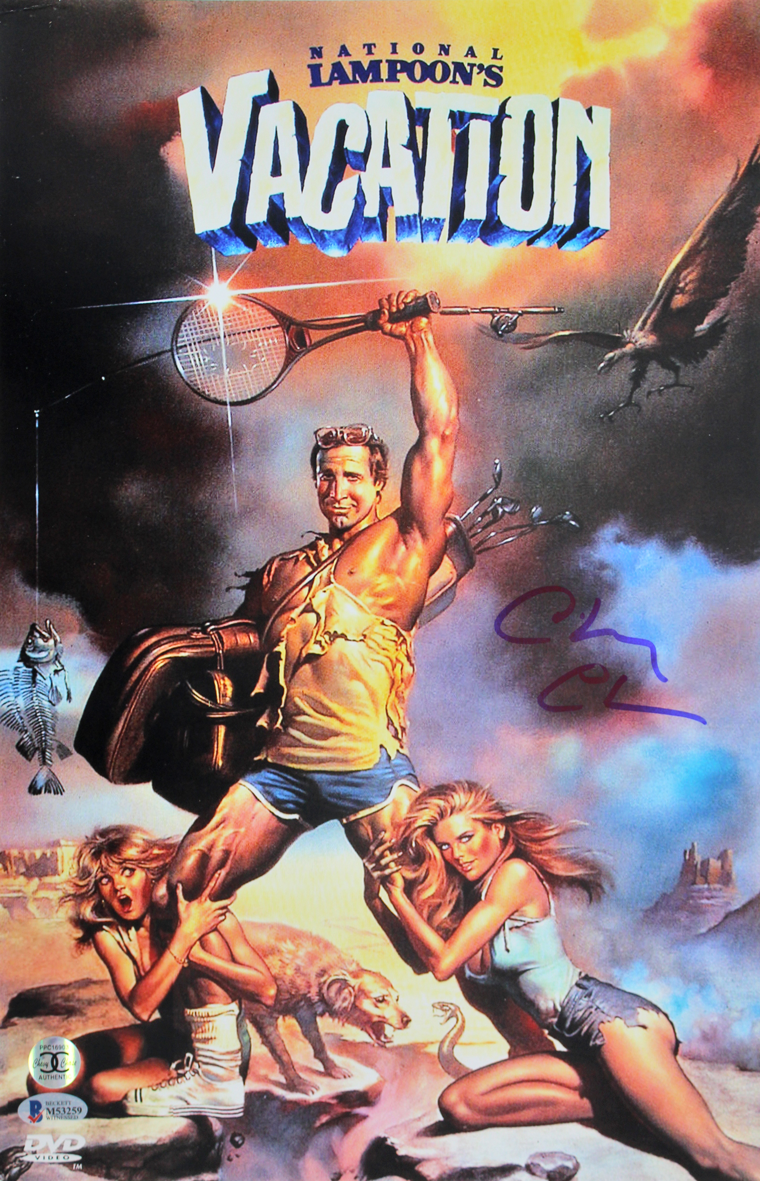 Chevy Chase Natl. Lampoon's Vacation Signed 12x18 Mini Movie Poster BAS #M53259