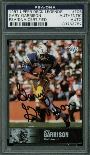 Chargers Gary Garrison Signed Card 1997 Upper Deck Legends #106 PSA/DNA Slabbed