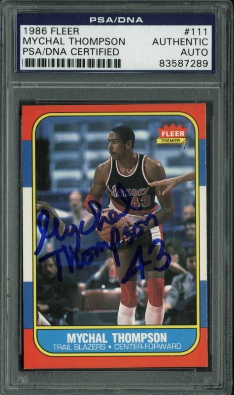 Blazers Mychal Thompson Authentic Signed Card 1986 Fleer #111 PSA/DNA Slabbed