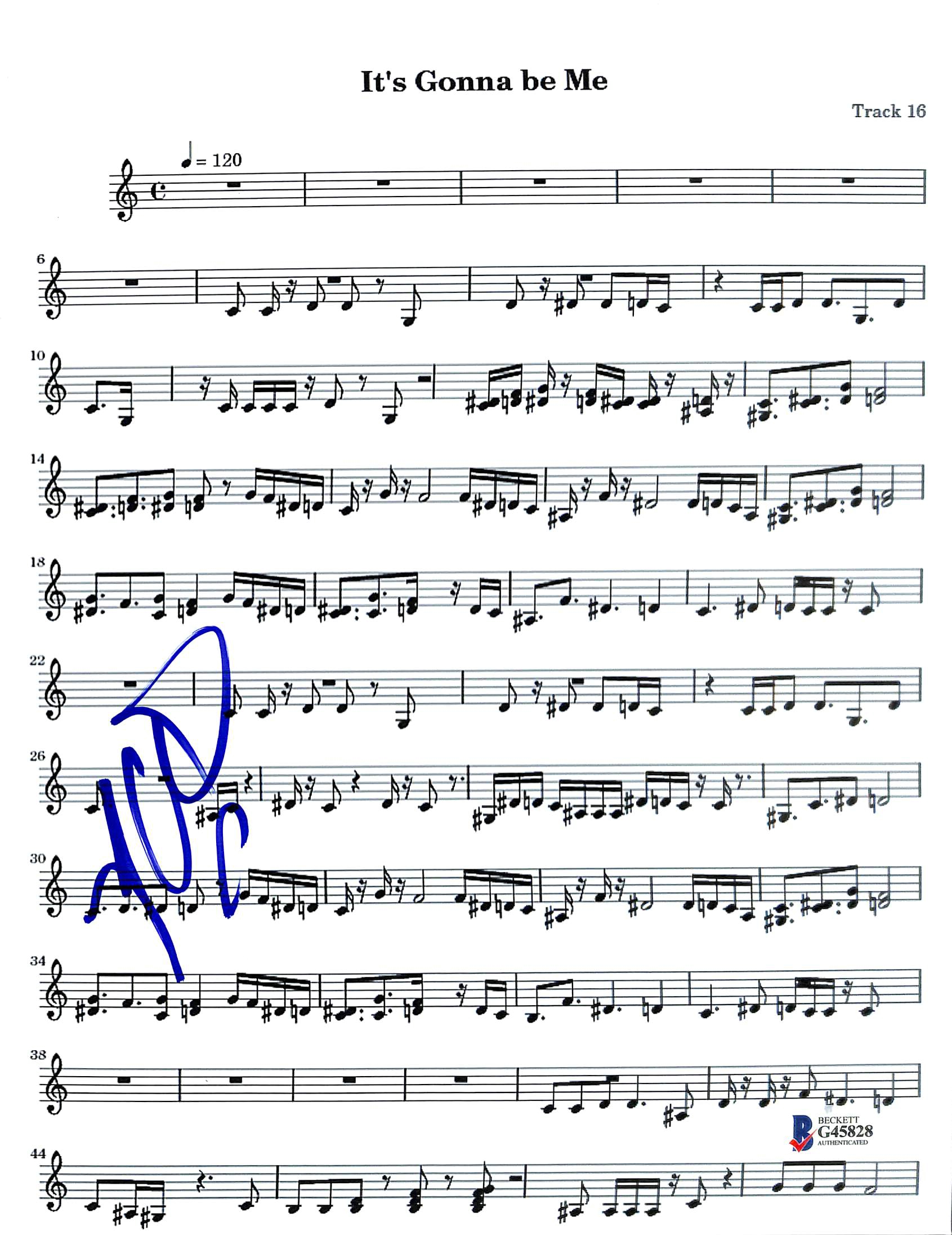 Lance Bass N'Sync Authentic Signed It's Gonna Be Me Music Sheet BAS #G45828