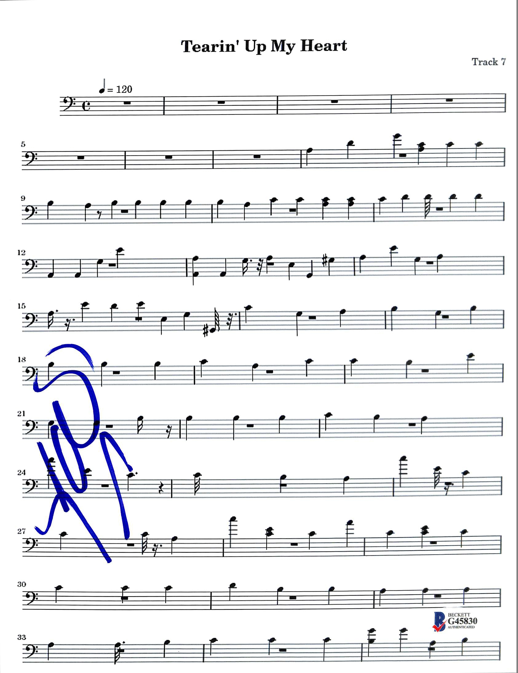 Lance Bass N'Sync Authentic Signed Tearin' Up My Heart Music Sheet BAS #G45830