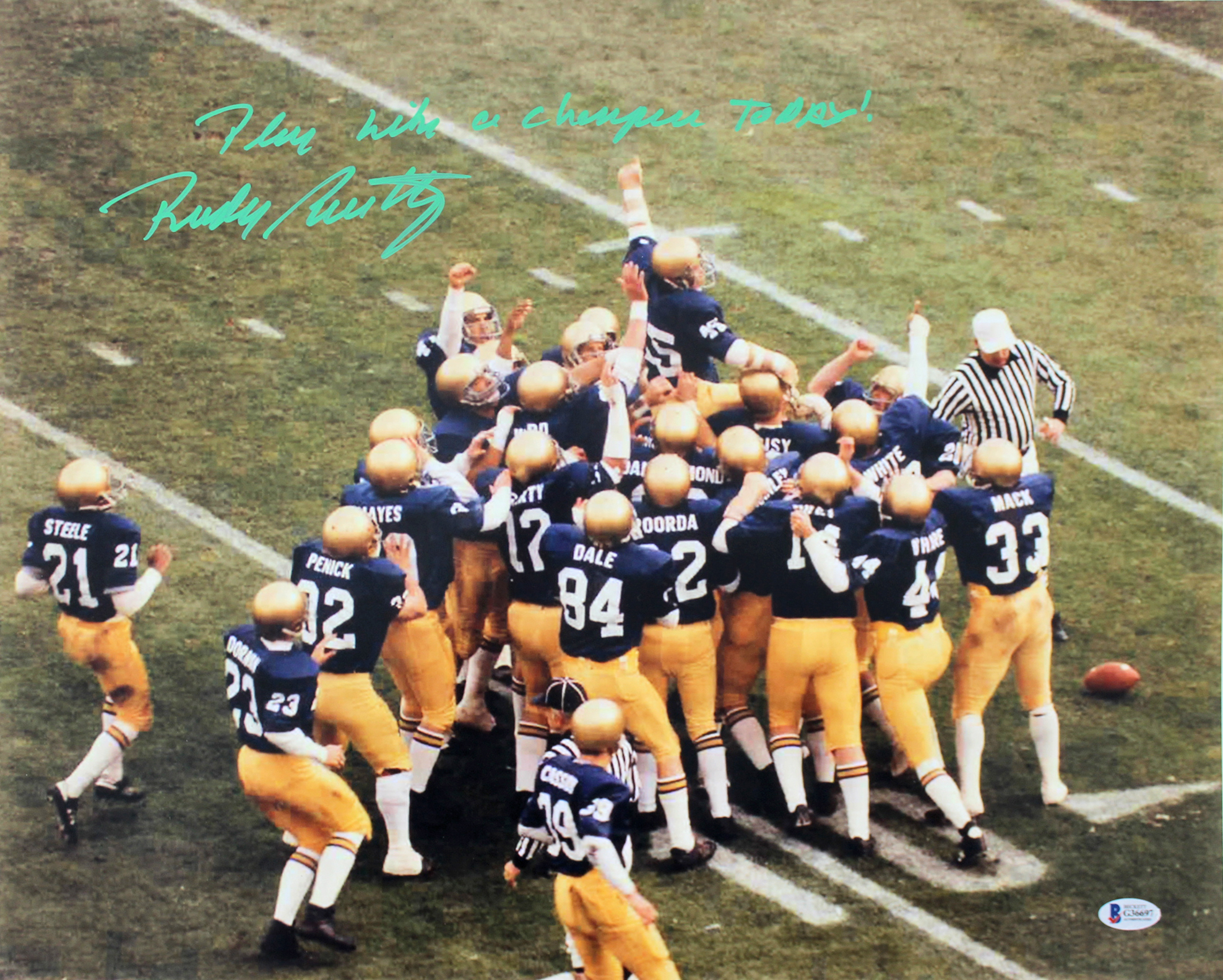 Notre Dame Rudy Ruettiger "Play Like A Champion Today!" Signed 16x20 Photo BAS