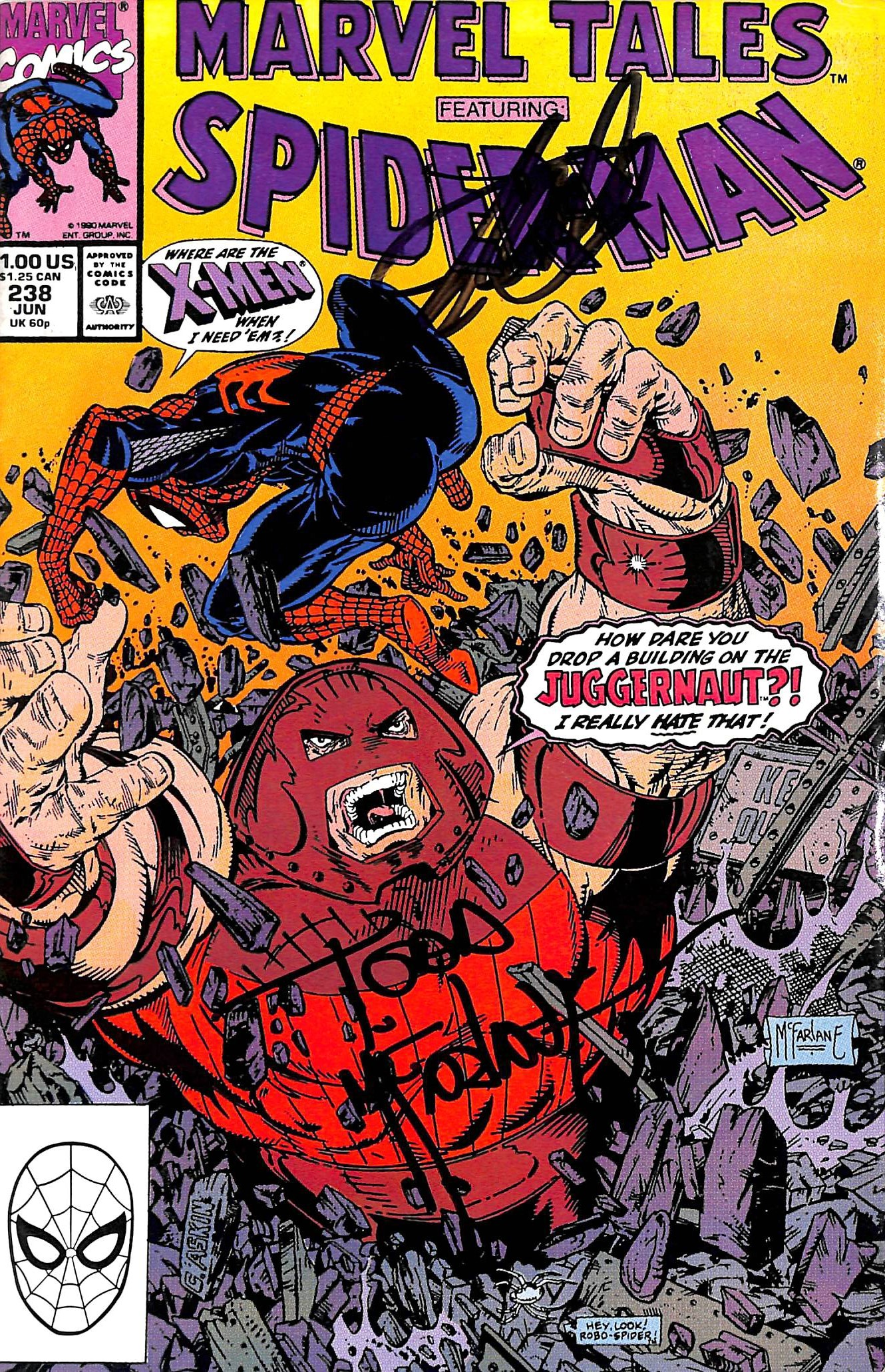 Stan Lee & Todd McFarlane Signed Marvel Tales Spider-Man #238 Comic BAS #E35336