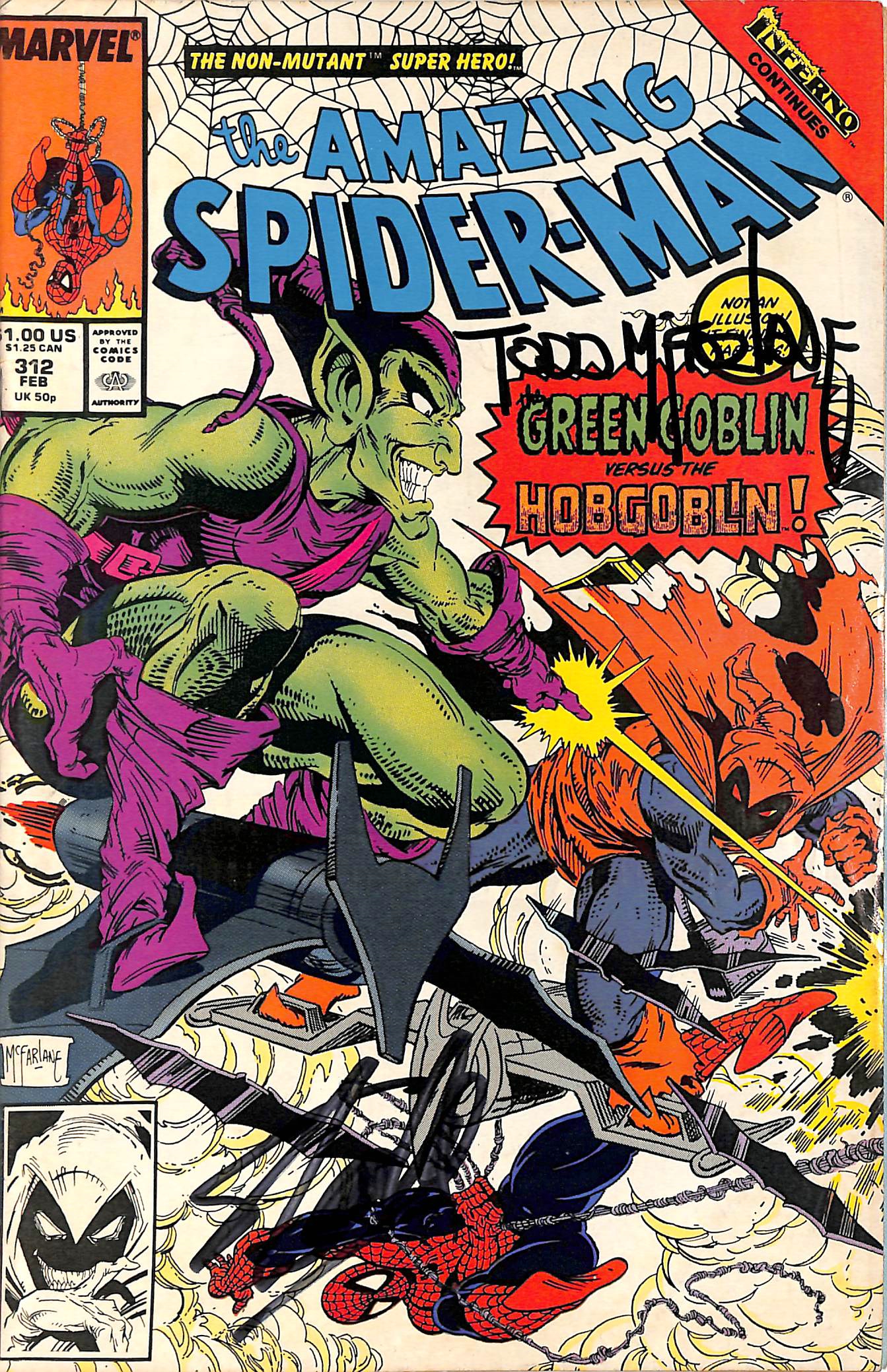 Stan Lee & Todd McFarlane Signed The Amazing Spider-Man #312 Comic BAS #E35334