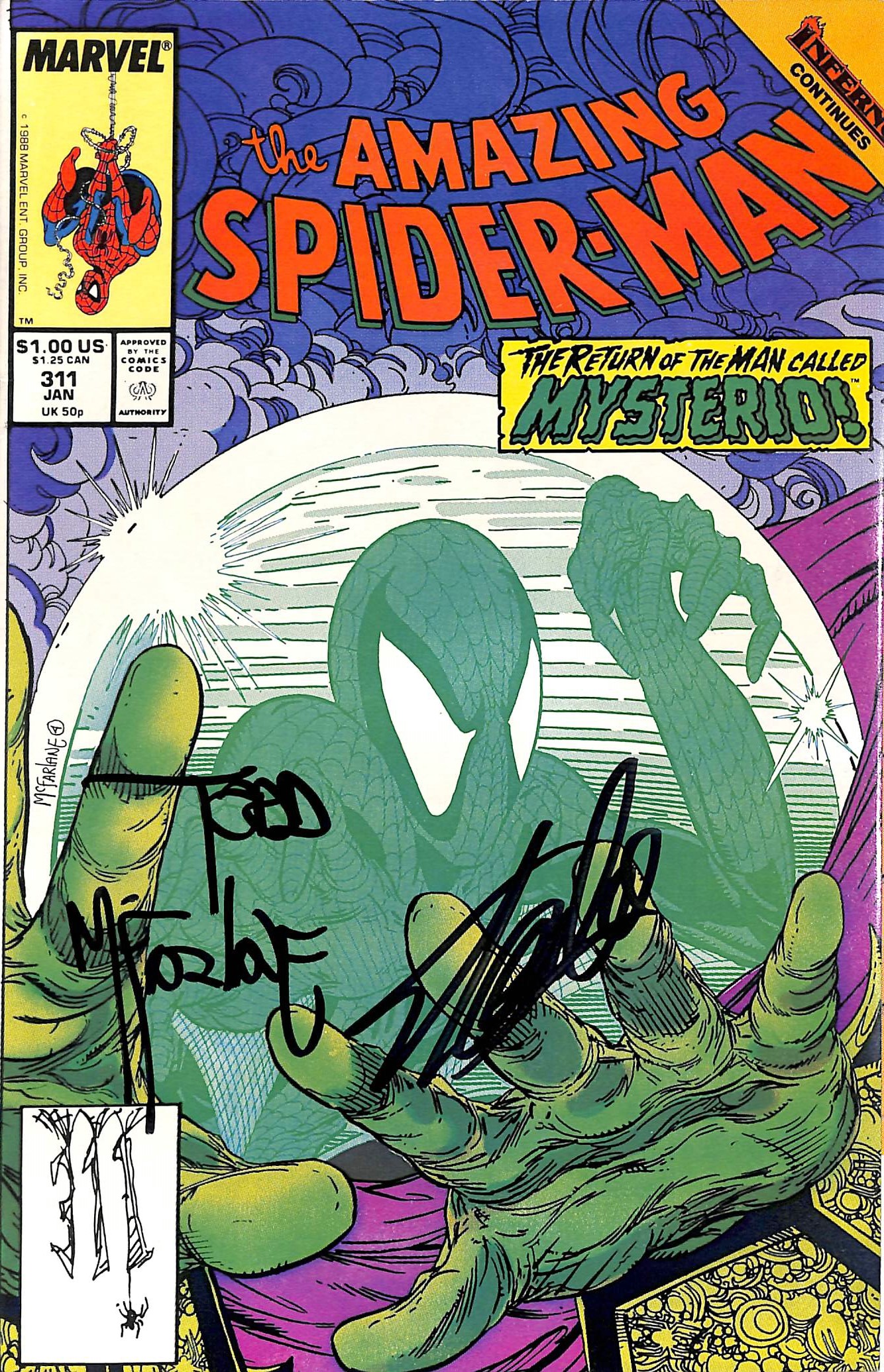 Stan Lee & Todd McFarlane Signed The Amazing Spider-Man #311 Comic BAS #E35339