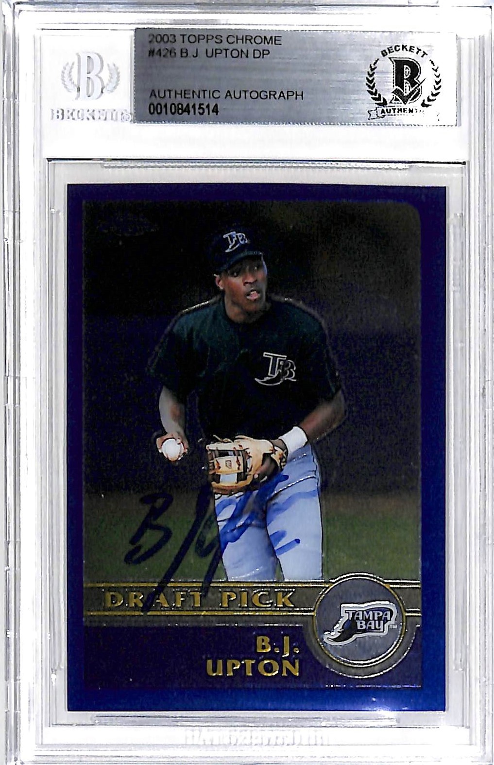 Rays B.J. Upton Authentic Signed 2003 Topps Chrome #426 RC Auto Card BAS Slabbed