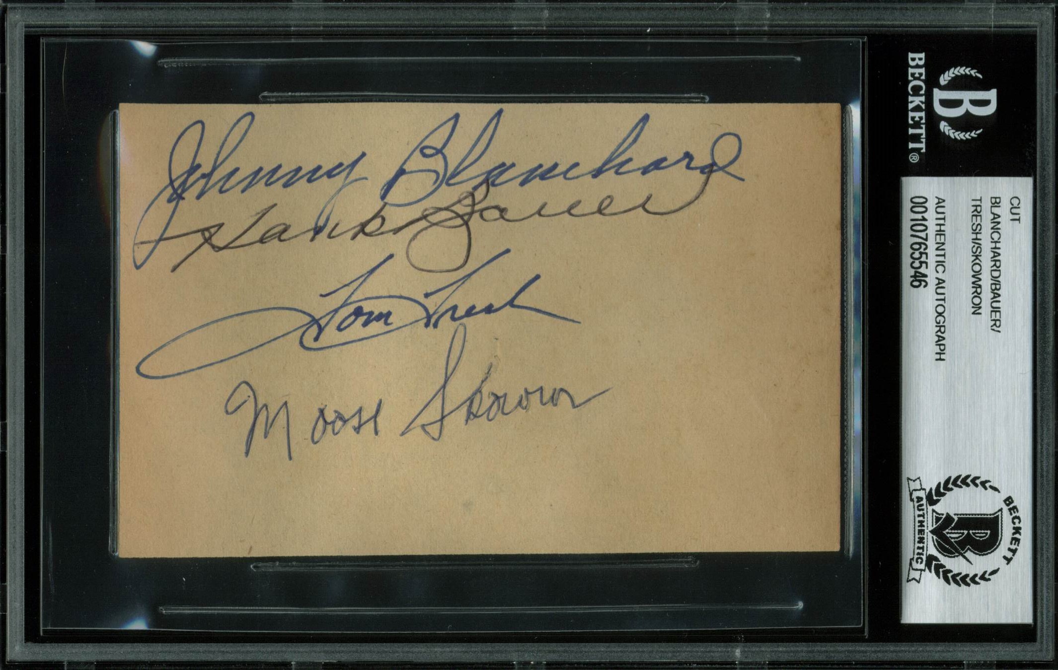 Yankees (4) Skowron, Blanchard, Bauer & Tresh Signed 3x4.75 Cut BAS Slabbed