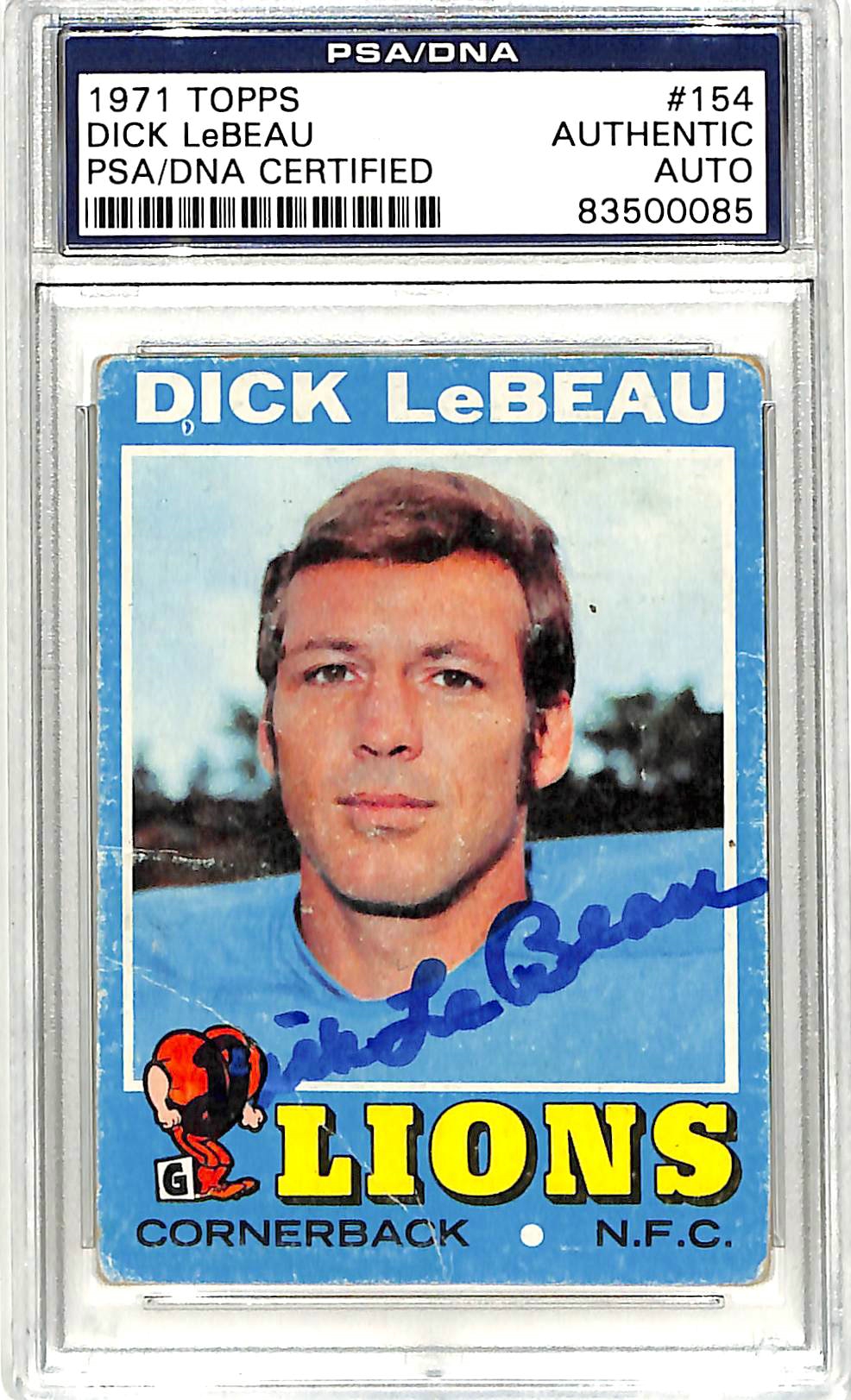 Lions Dick LeBeau Signed 1971 Topps #154 Auto Card PSA/DNA Slabbed #83500086