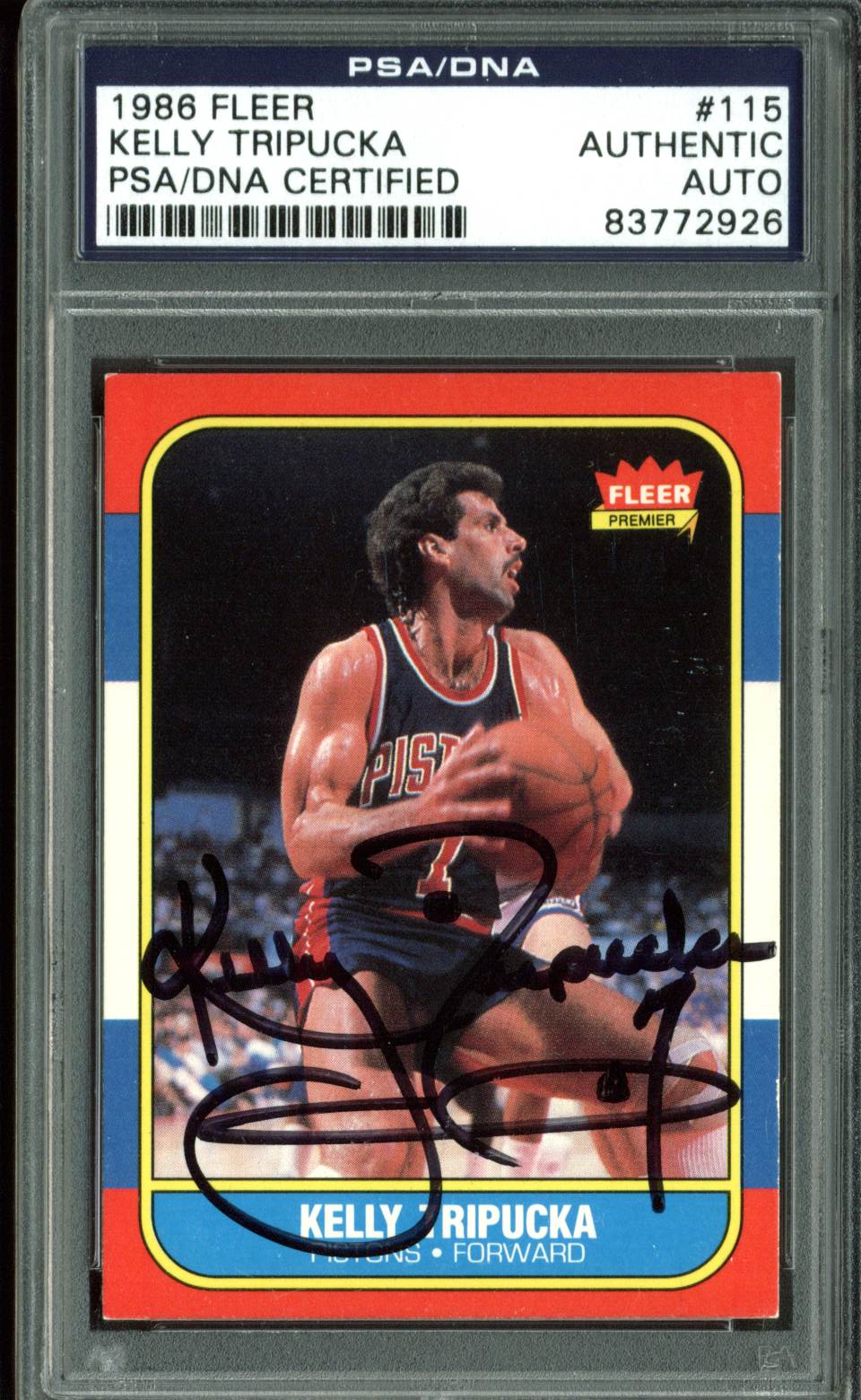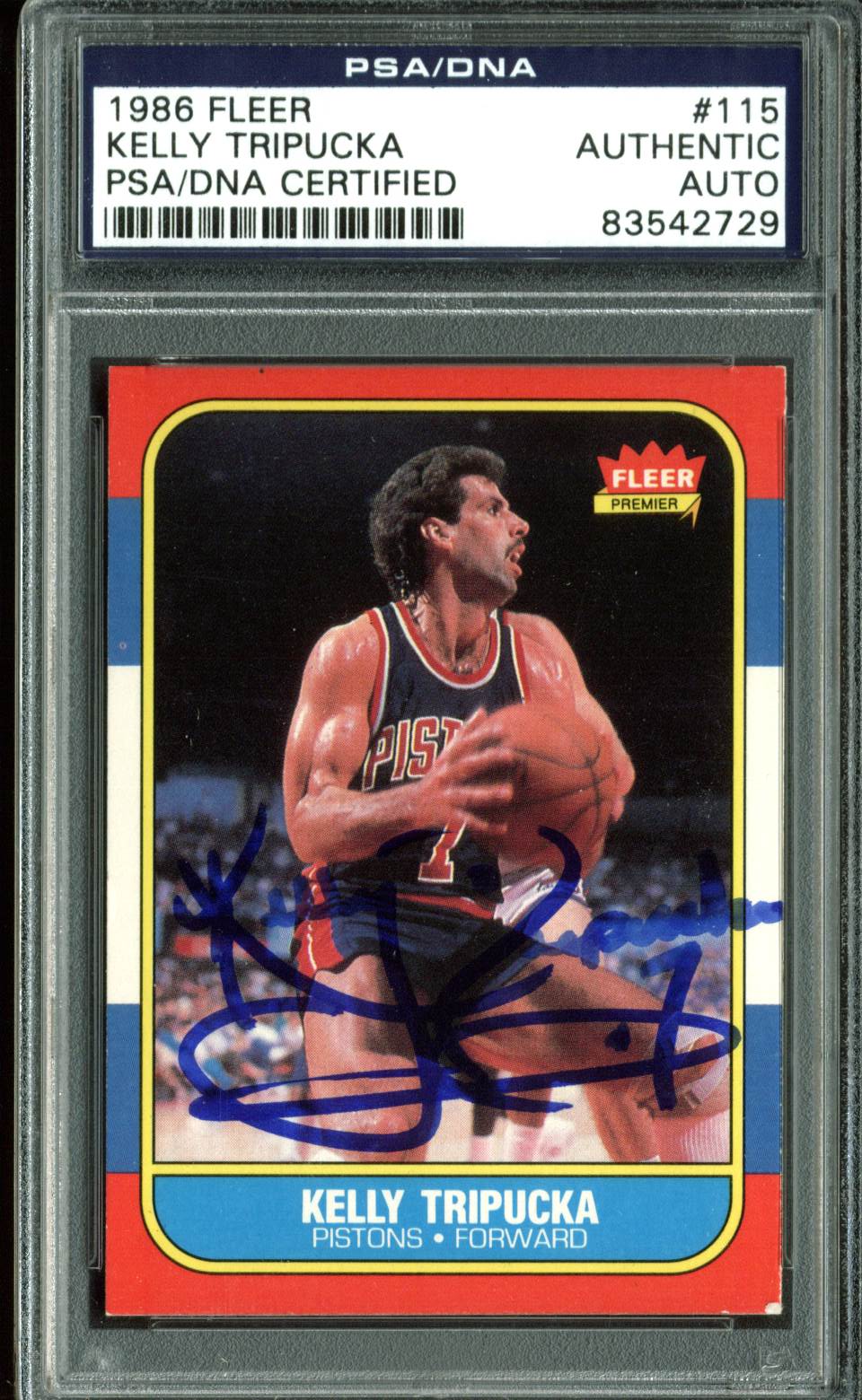Pistons Kelly Tripucka Authentic Signed 1986 Fleer #115 Auto Card PSA Slabbed 1