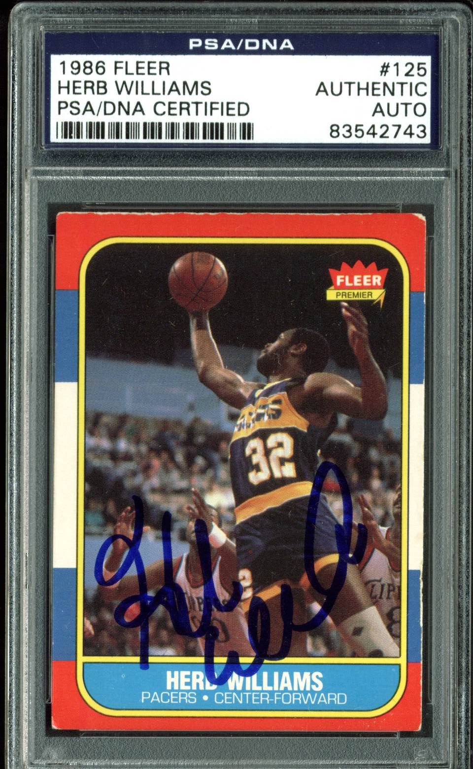 Pacers Herb Williams Authentic Signed 1986 Fleer #125 Card PSA/DNA Slabbed 1