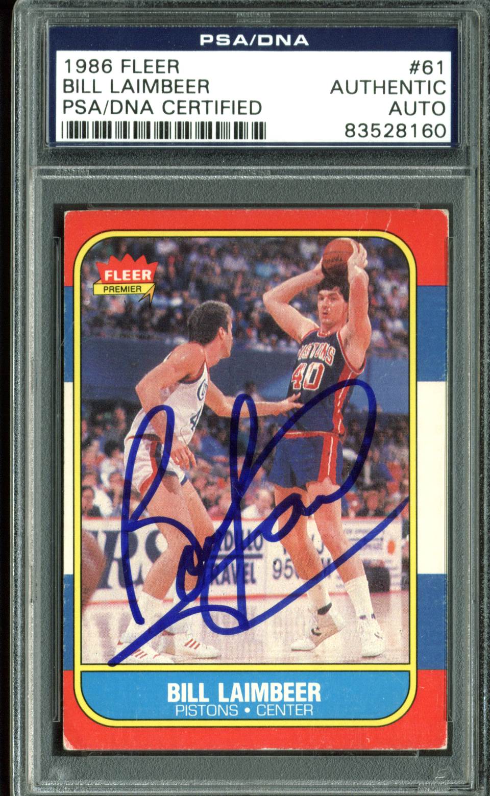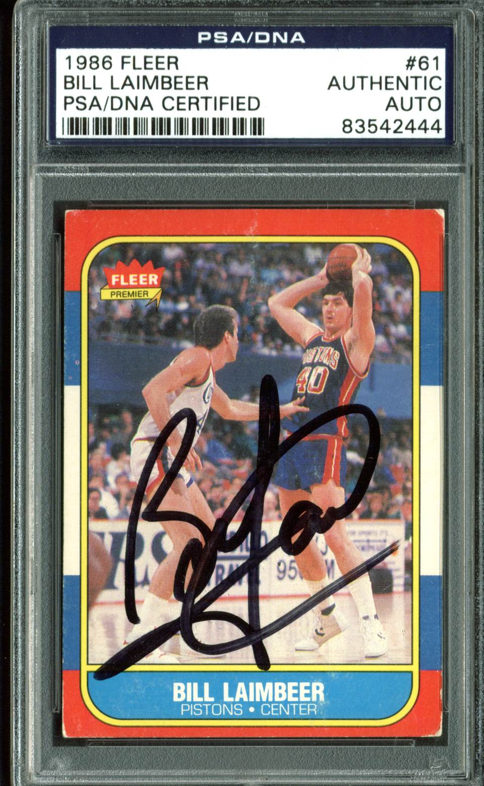 Pistons Bill Laimbeer Authentic Signed 1986 Fleer #61 Auto Card PSA/DNA Slab 1