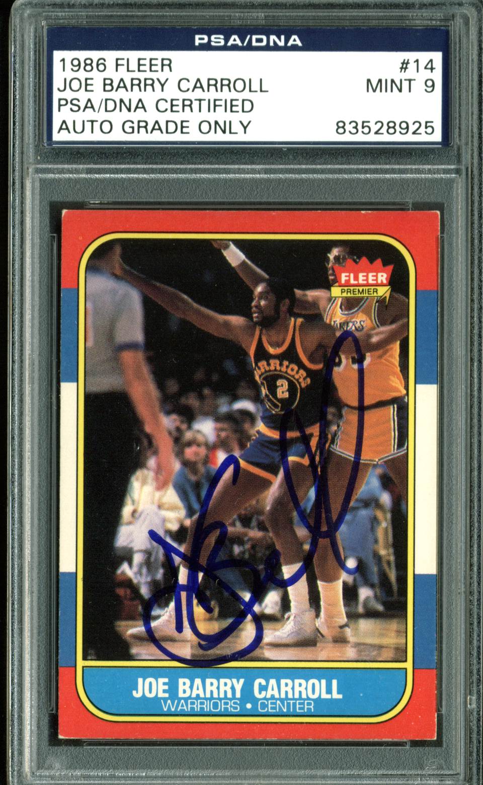 Warriors Joe Barry Carroll Signed 1986 Fleer #14 Card Auto Graded 9! PSA Slab