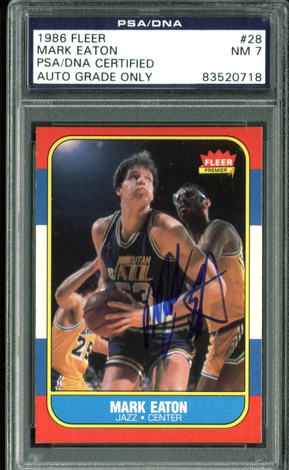 Jazz Mark Eaton Signed 1986 Fleer #28 Auto Card Auto Graded NM 7 PSA/DNA Slabbed