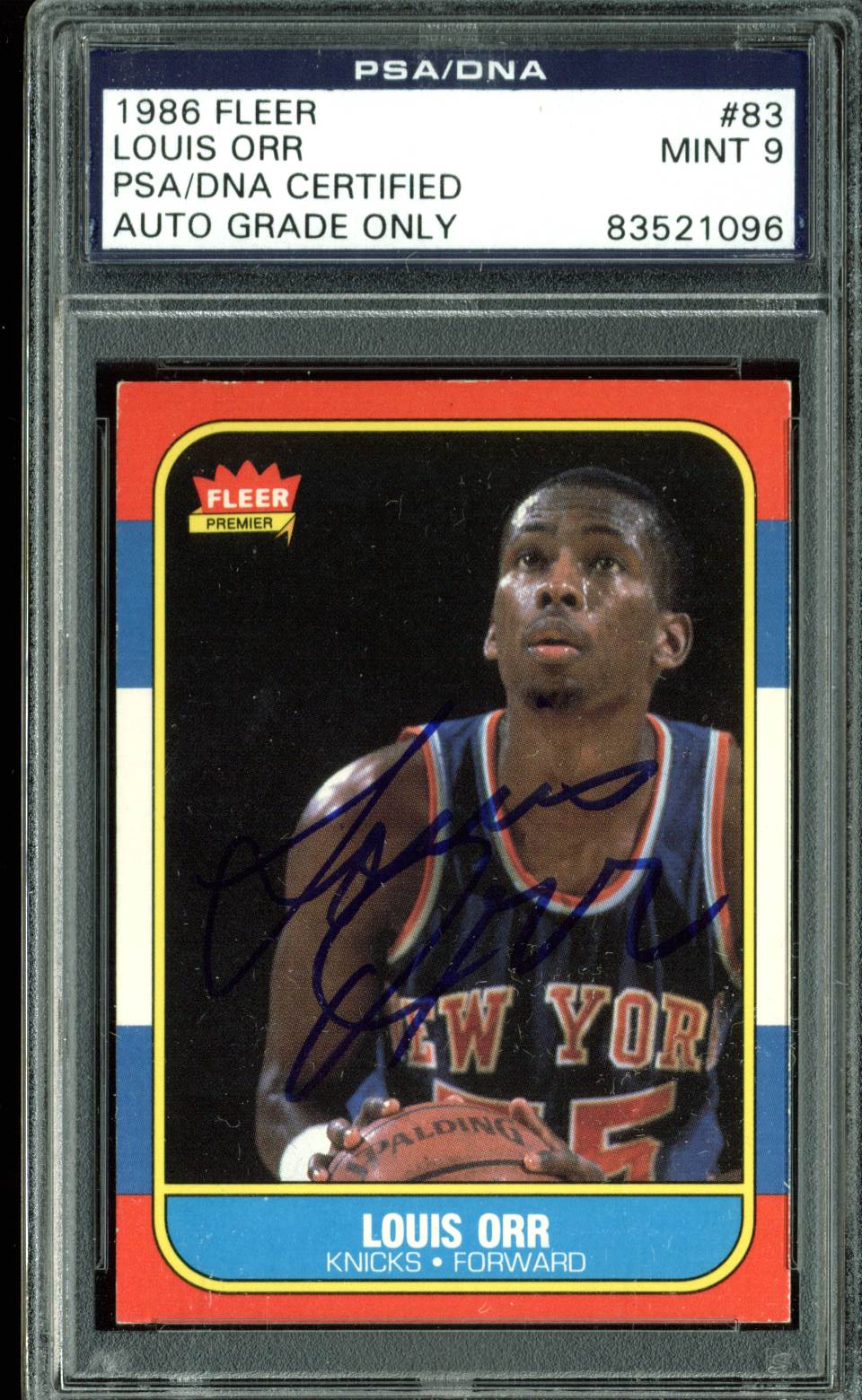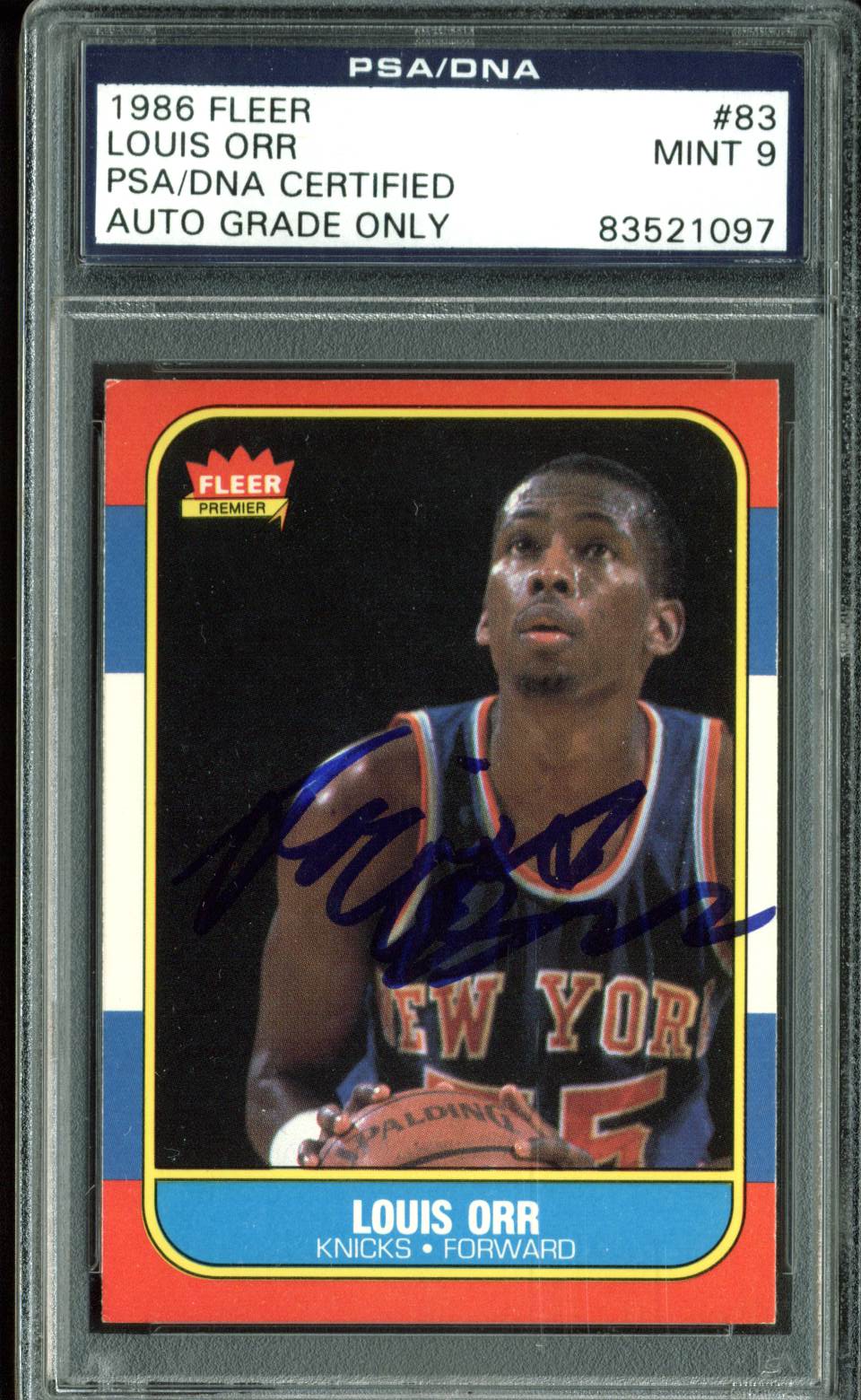 Knicks Louis Orr Signed 1986 Fleer #83 Card Auto Graded Mint 9! PSA Slabbed 1