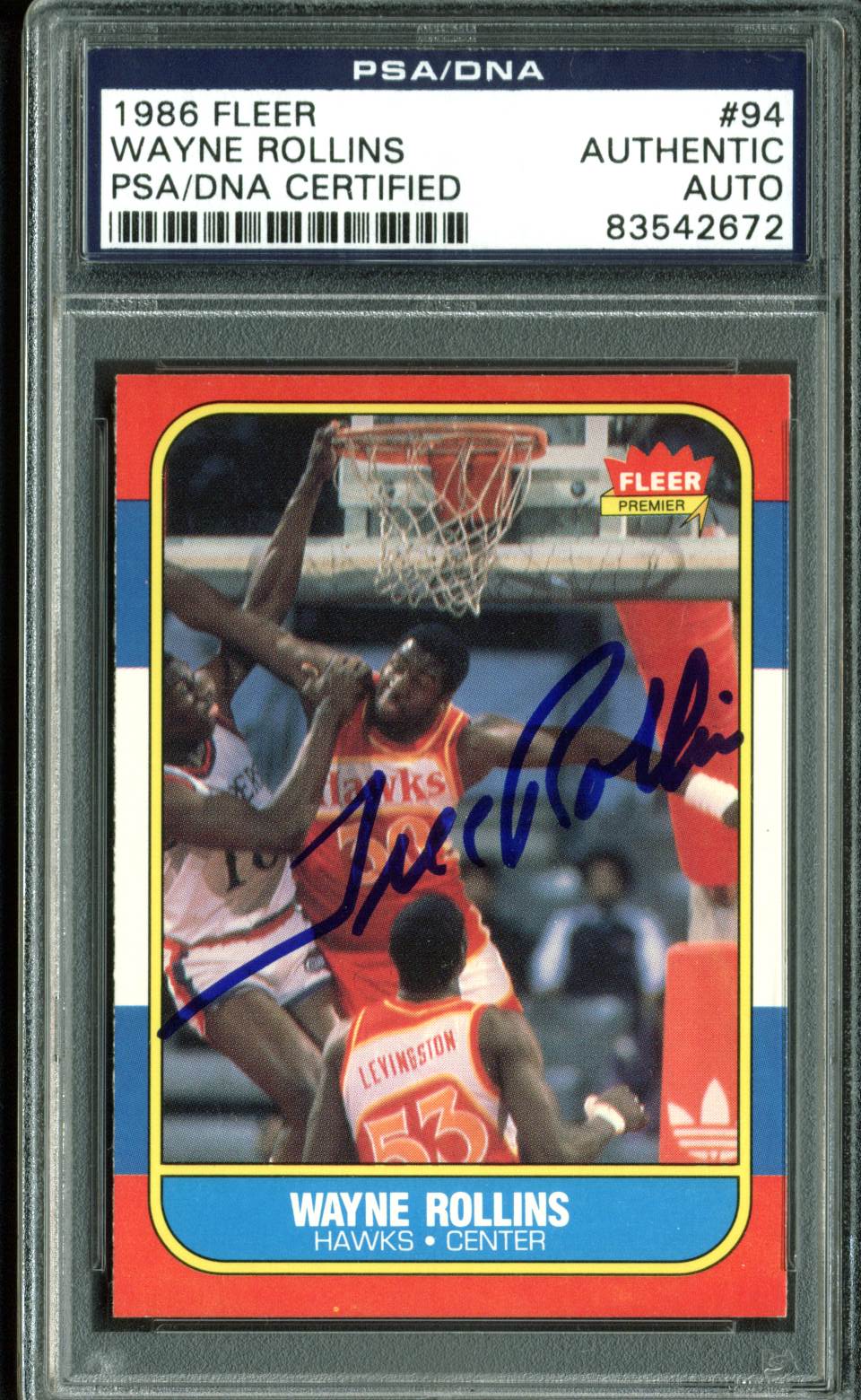 Hawks Wayne Tree Rollins Authentic Signed 1986 Fleer #94 Auto Card PSA/DNA Slab