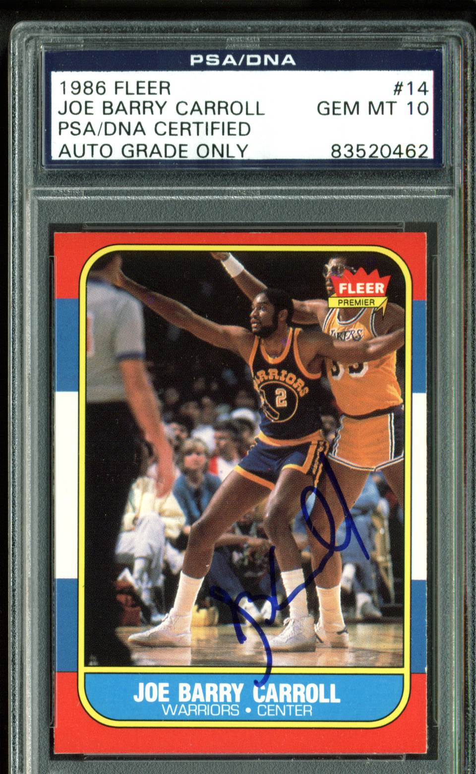 Warriors Joe Barry Carroll Signed 1986 Fleer #14 Card Auto Graded 10! PSA Slab 2