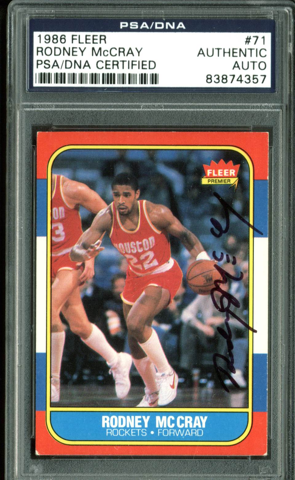 Rockets Rodney McCray Authentic Signed 1986 Fleer #71 Auto Card PSA Slabbed 2