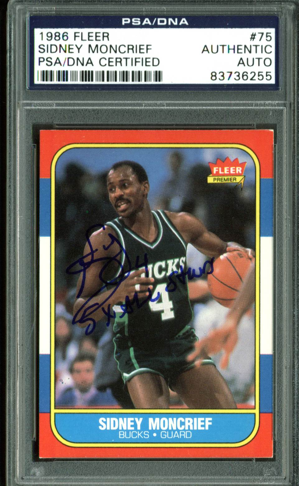 Bucks Sidney Moncrief "5x All Star" Signed 1986 Fleer #75 Card PSA/DNA Slabbed