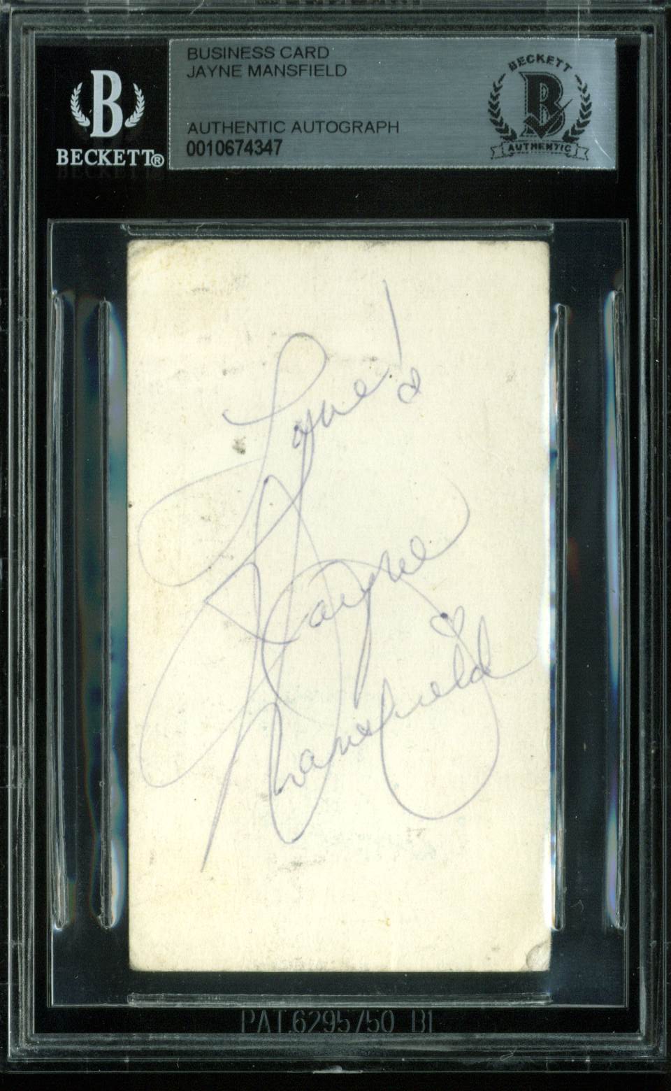 Jayne Mansfield Love! Authentic Signed Business Card Autographed BAS Slabbed