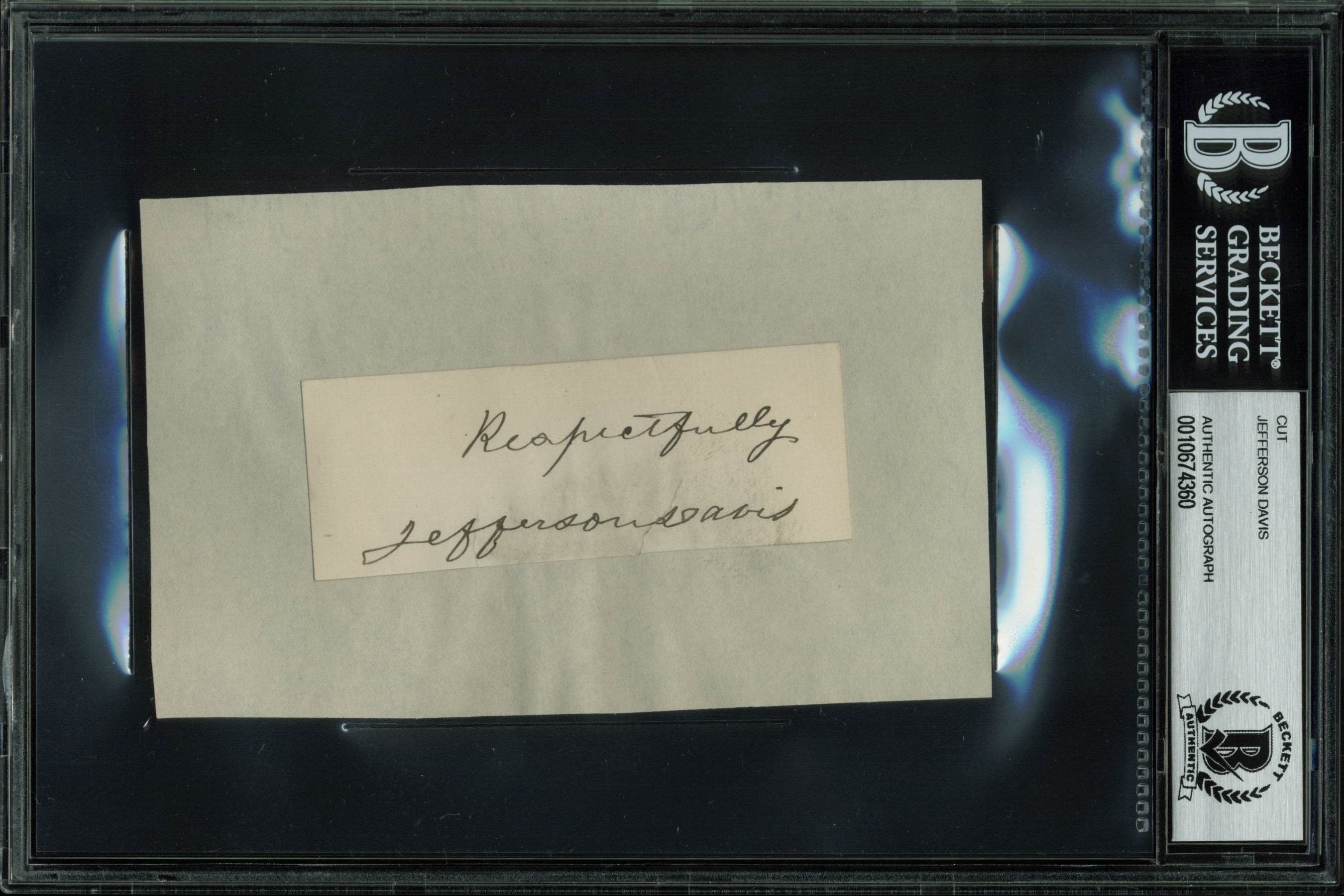Jefferson Davis "Respectfully" Authentic Signed 1.35x3.5 Cut Signature BAS Slab