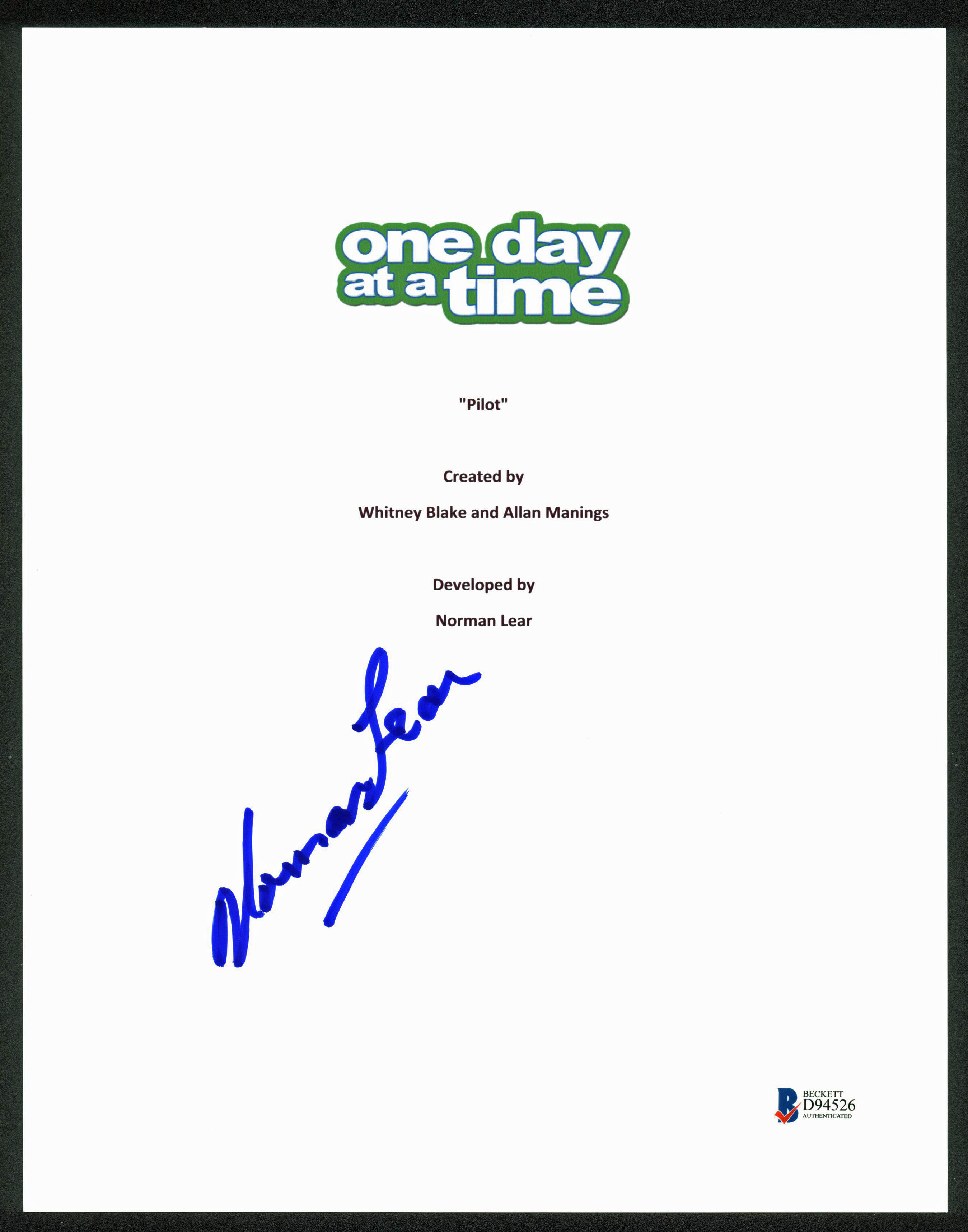 Norman Lear Authentic Signed 8.5x11 On Day At A Time Script Cover BAS #D94526