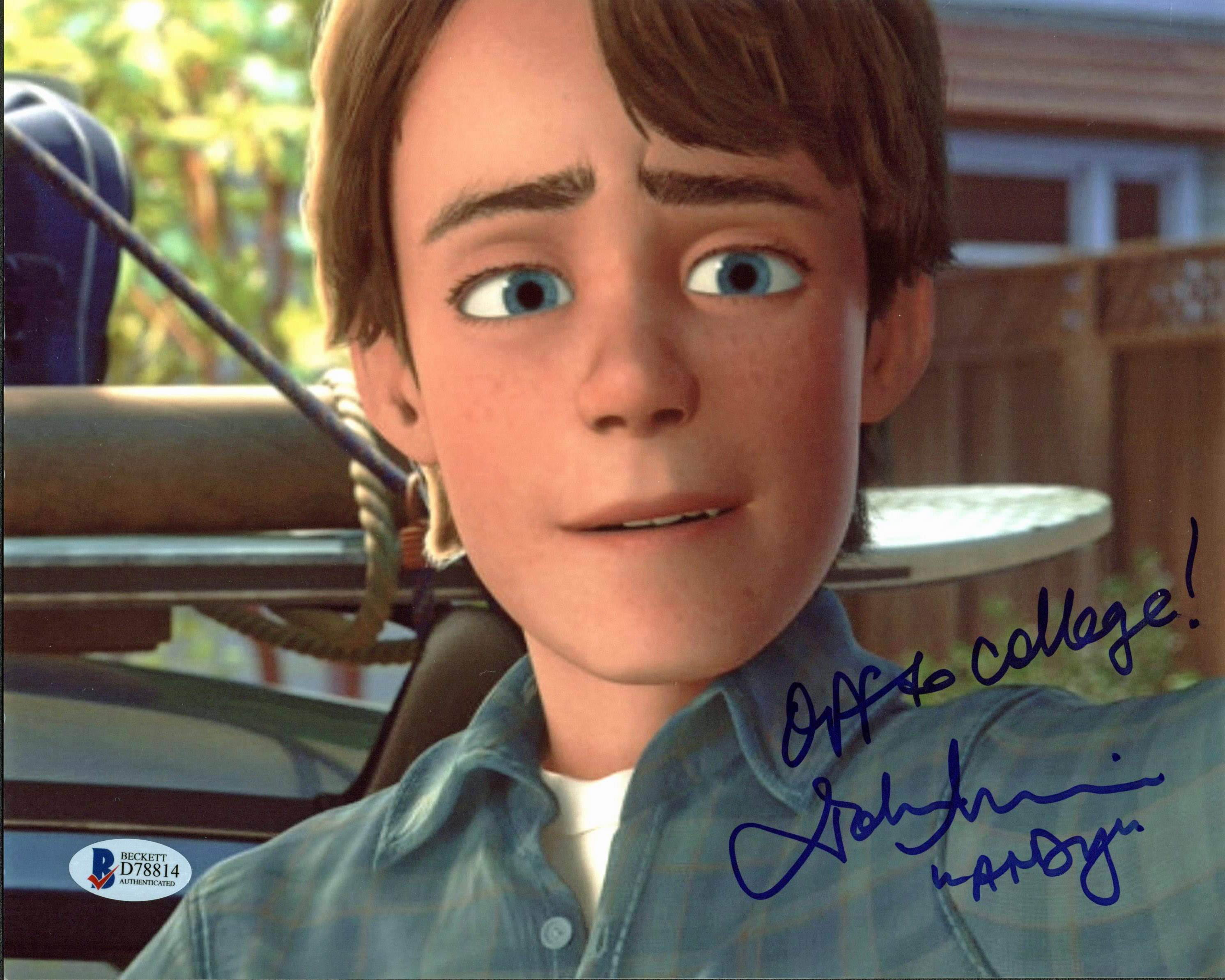 John Morris Toy Story "Off To College! Andy" Signed 8x10 Photo BAS #D78814