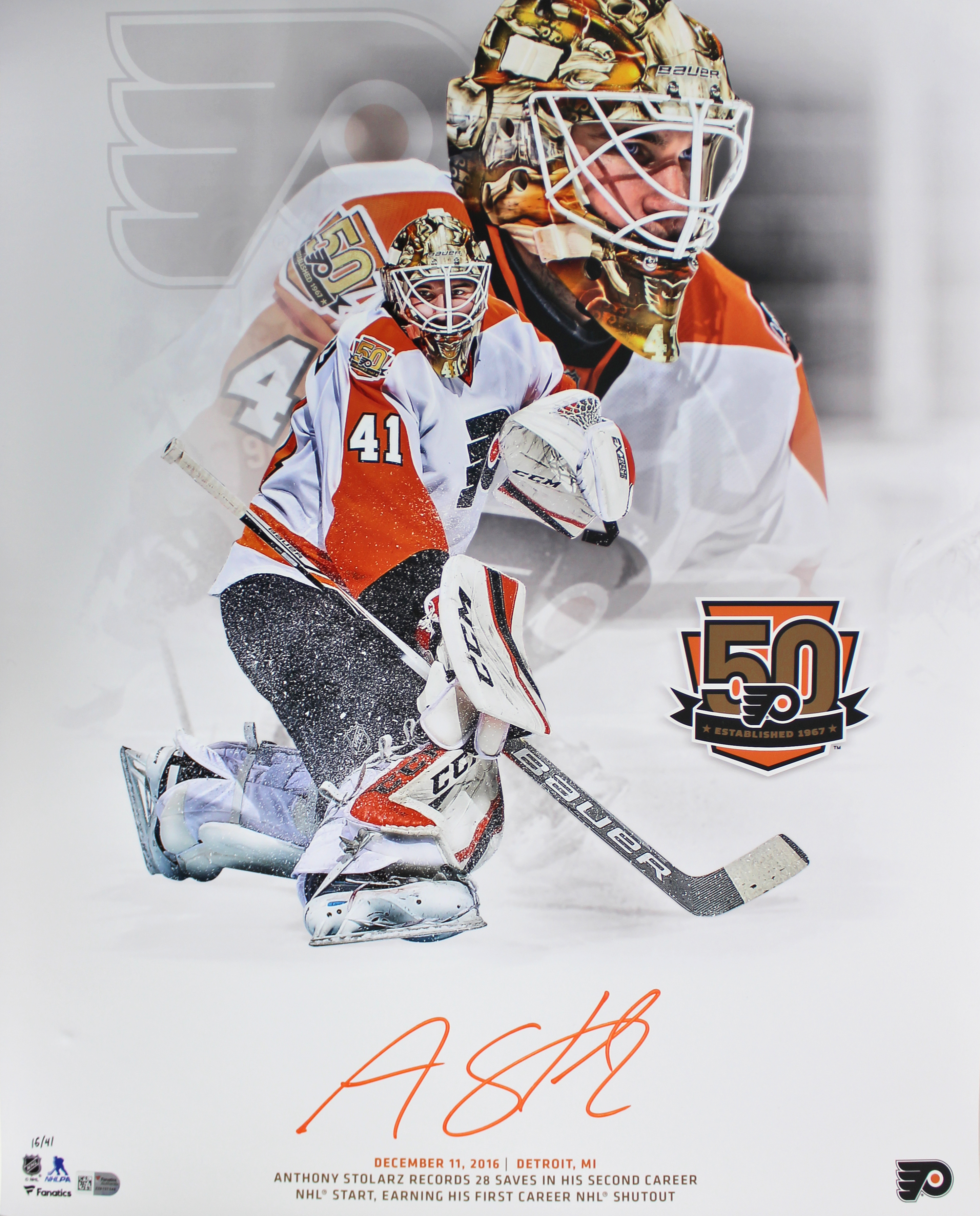 Flyers Anthony Stolarz Authentic Signed 16x20 Photo LE 16/41 Fanatics #ZZ0127346