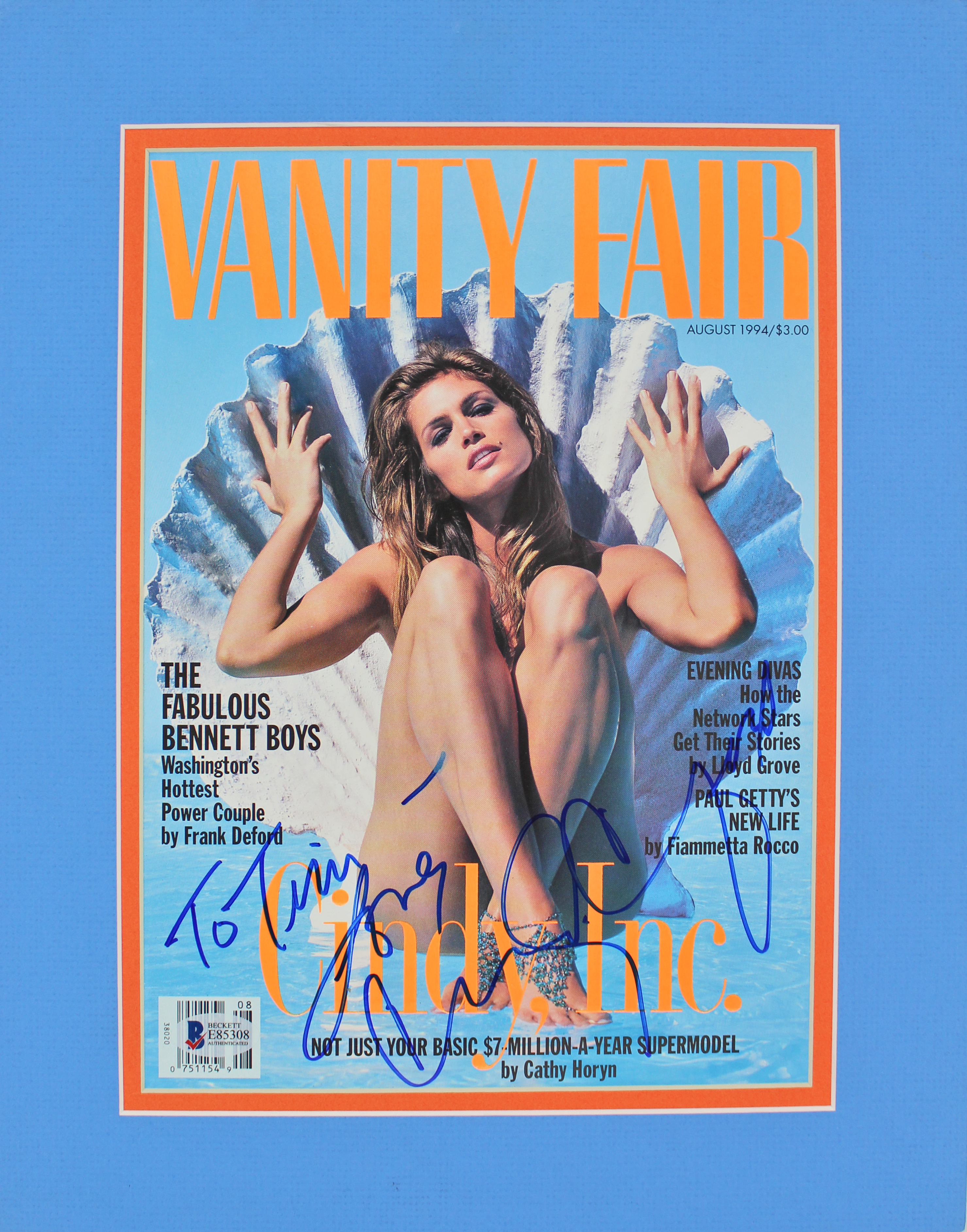 Cindy Crawford Authentic Signed Vanity Fair Magazine Cover Matted BAS #E85308