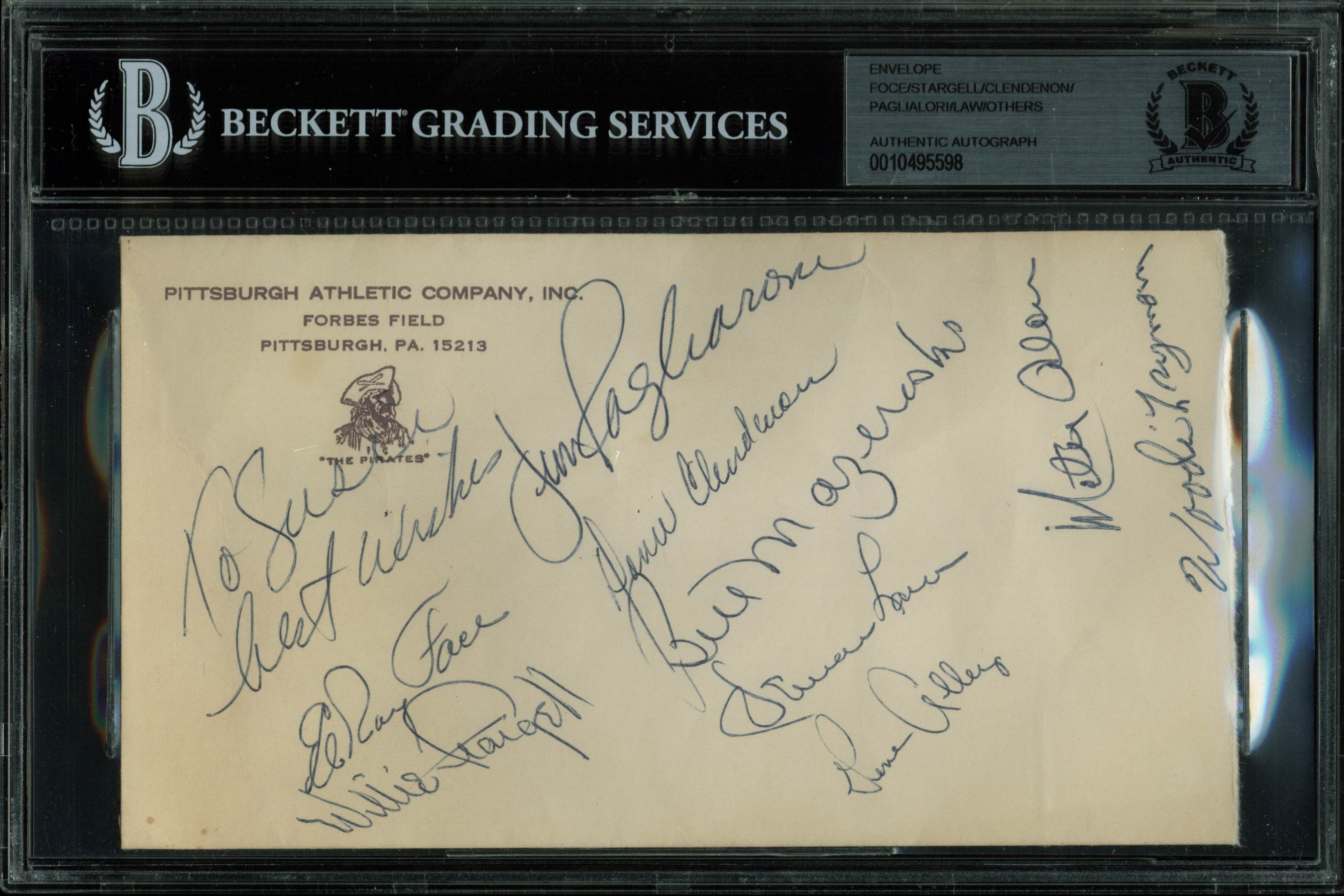 1967 Pirates (9) Stargell, Clendenon, Mazeroski Signed 4x7.5 Envelope BAS Slab
